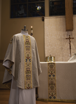 Additionally, we deeply value our DIY community and recognize that custom-crafted vestments might not be within everyone's budget. To support your creative journey, we offer an extensive selection of patterns, fabrics, trims, and more, enabling the inspired DIY seamstress to create a truly unique vestment for your church.