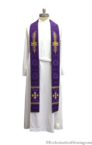 Advent Tau Cross Crown Messianic Rose Stole | Blue or Violet Priest Stole