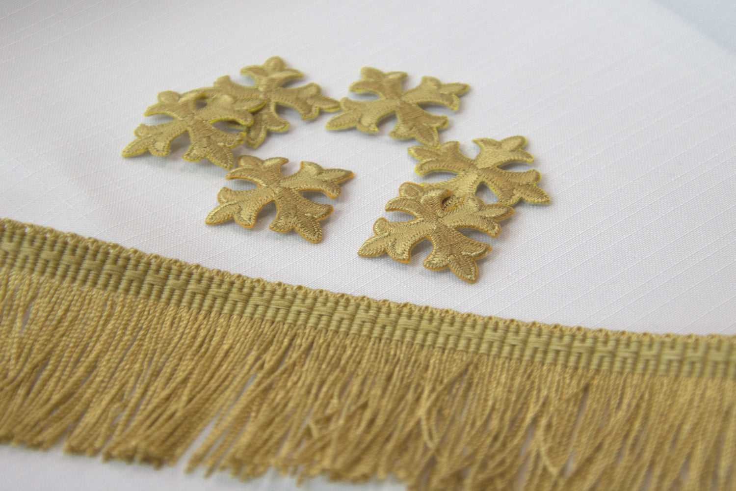 6 Antique Gold Iron-On Crosses and ½ Yard of 2" Antique Gold Fringe
