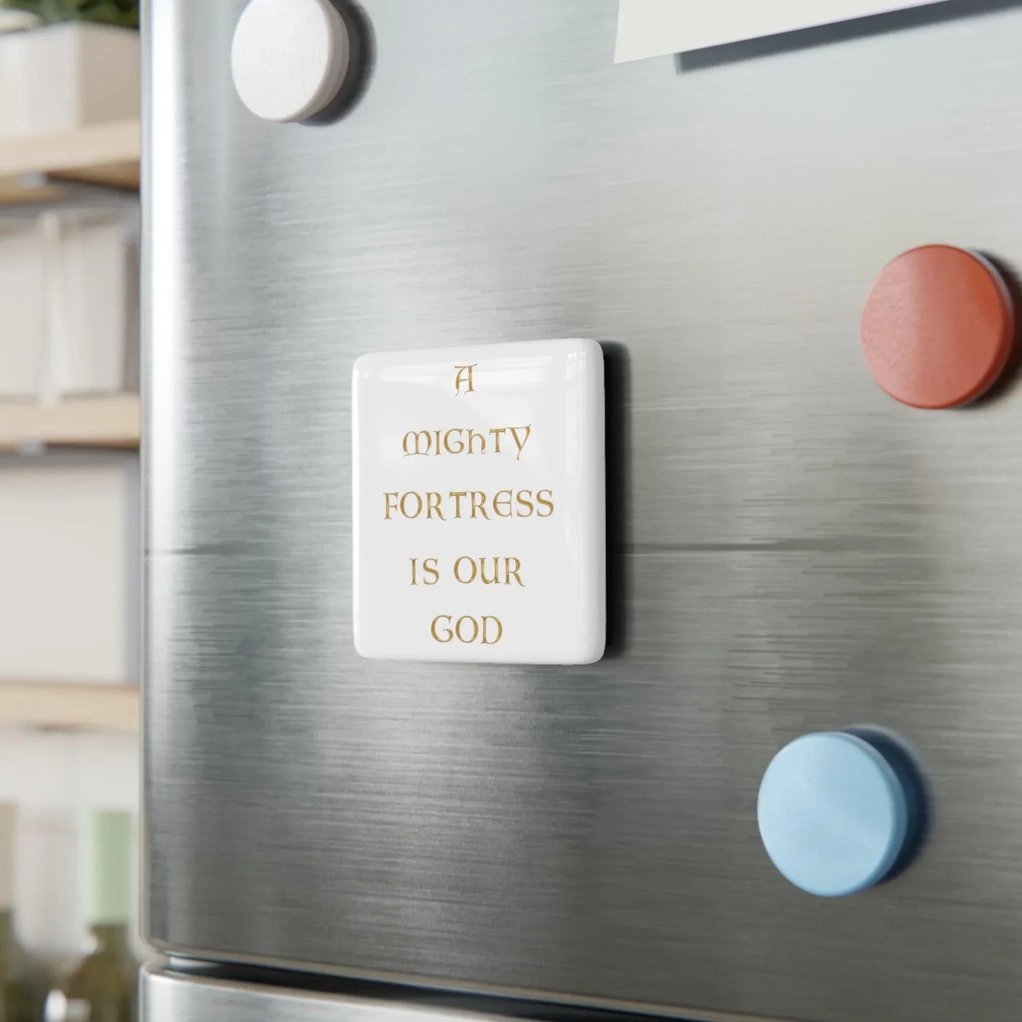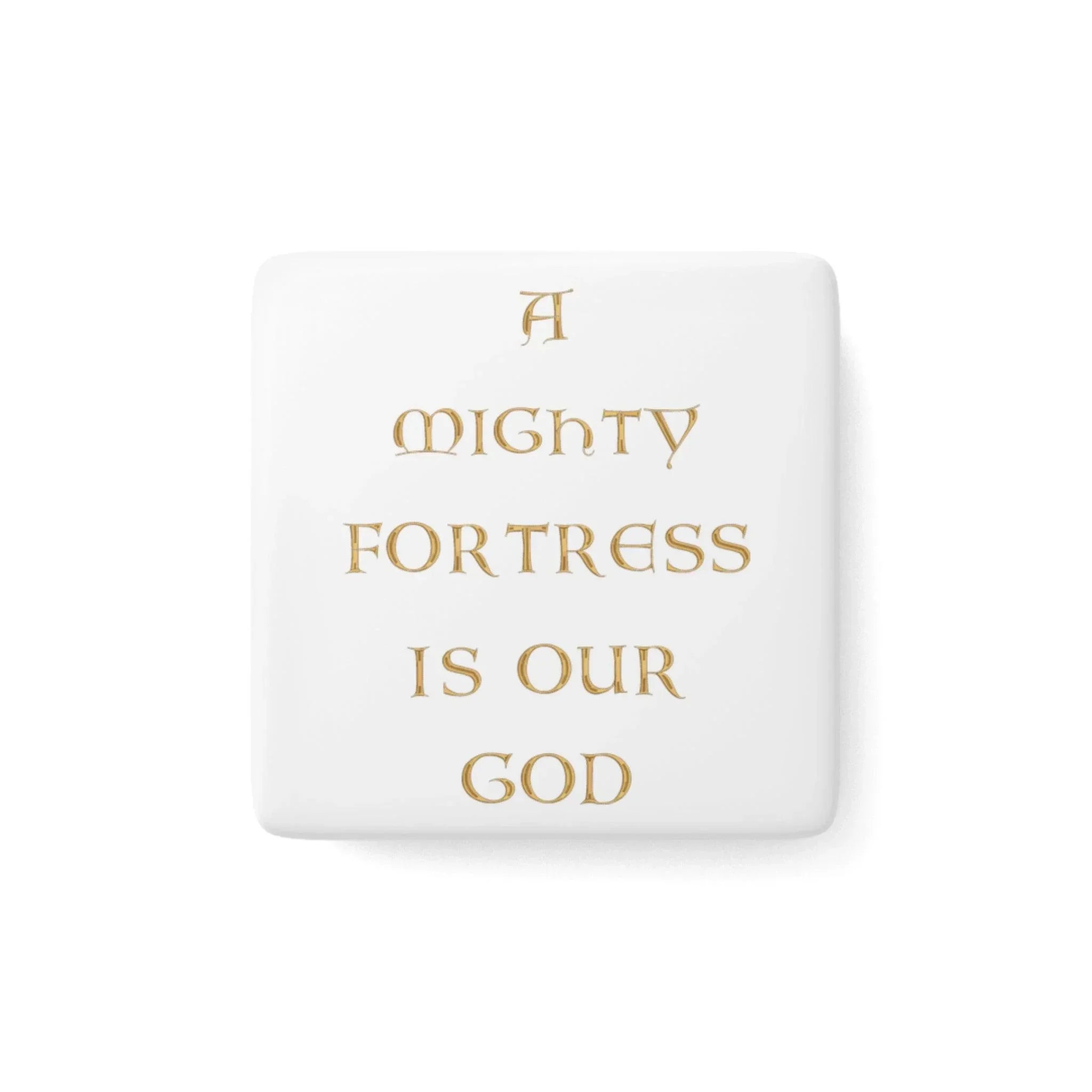 Lutheran Christian Fridge Magnet - A Mighty Fortress is Our God - 2" Square Porcelain with Glossy Finish