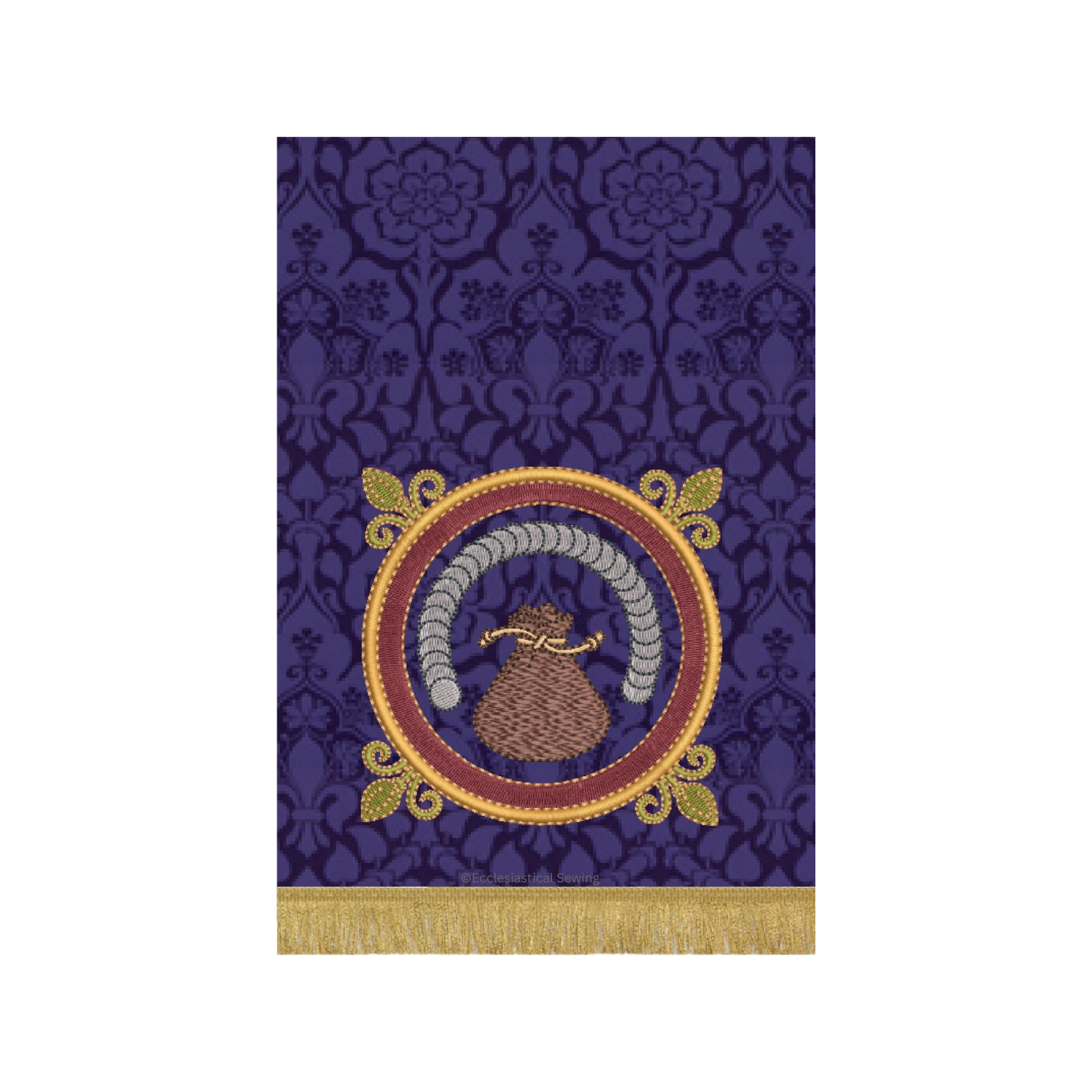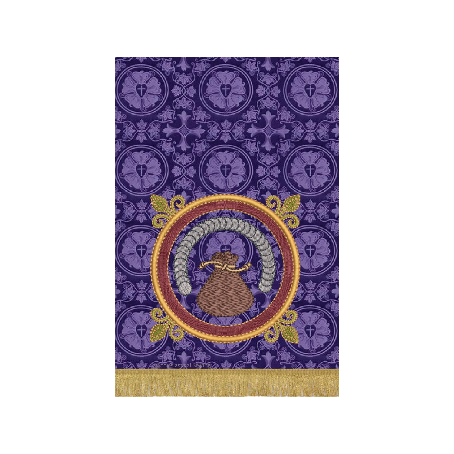 Part of our Lent & Passiontide Collection, this liturgical hanging is crafted from rich violet brocade, a traditional color and fabric representing penitence, preparation, and reflection.