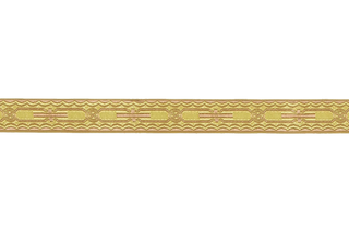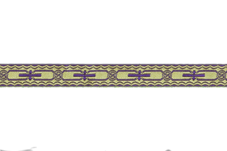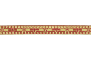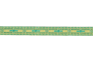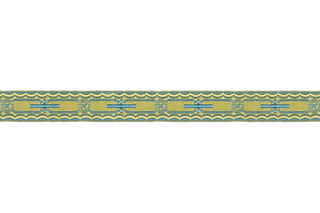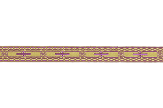 Ecclesia Braid features an elongated cross design in a hexagonal frame. This trim is available in a Rayon (non-metallic) style. It is also available in a 1" width. Ecclesia Braid works well as a trim for orphrey bands and outlining designs. Using both widths expands design possibilities for multiple projects. The Rayon colors are: Violet, Roman Purple, Blue, Green, Red, Gold, Black.