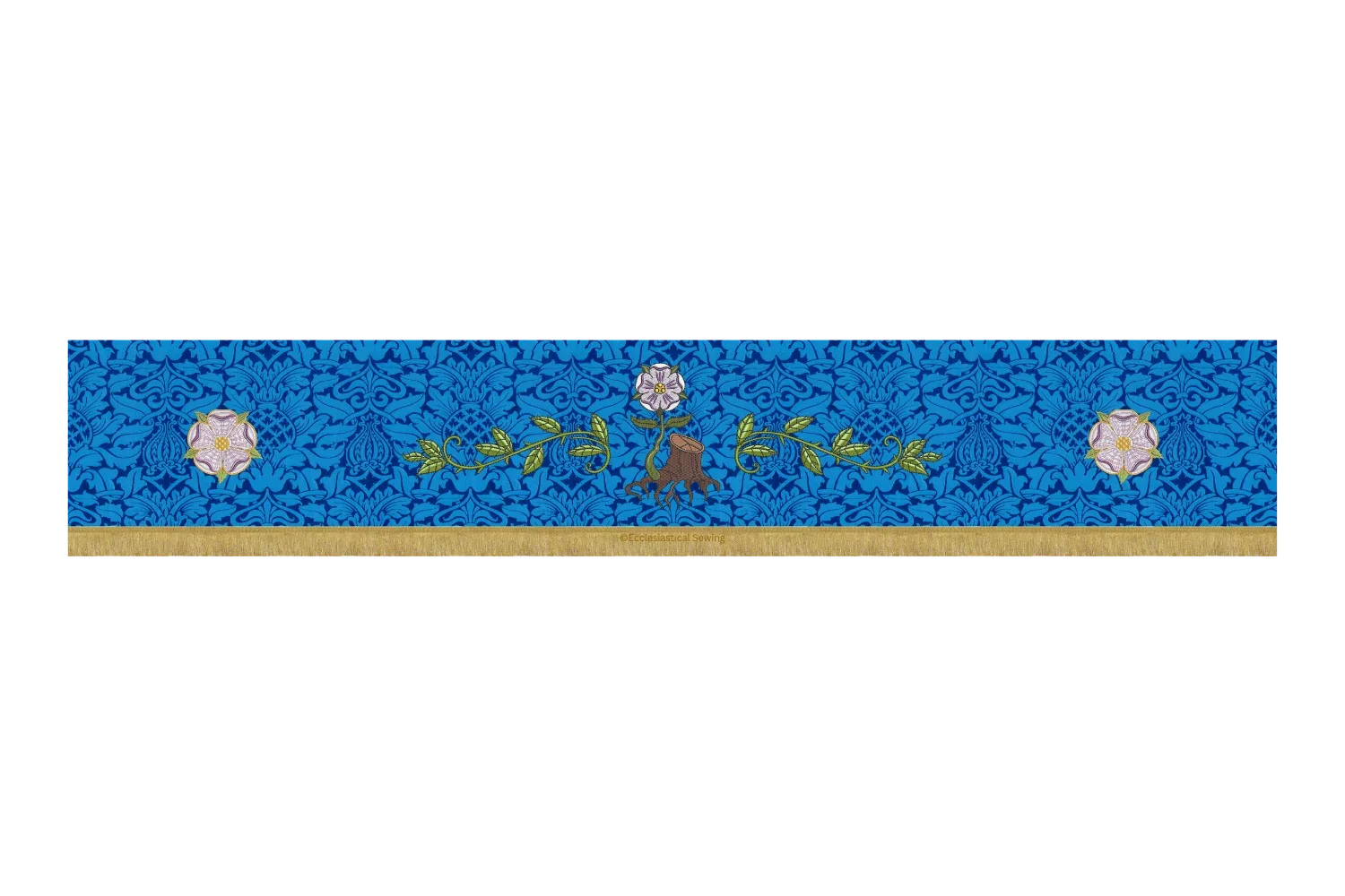 Superfrontals for the Great O'Antiphons of Advent include the richly symbolic images of Jesse with tree roots blossoms into a majestic Messianic Rose with vines and ornate cross designs.