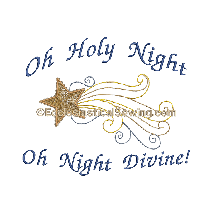 The Oh Holy Night with Star Digital Machine embroidery design is perfect for use on many projects such as church banners or home decor. The design stitches with 5 thread colors.