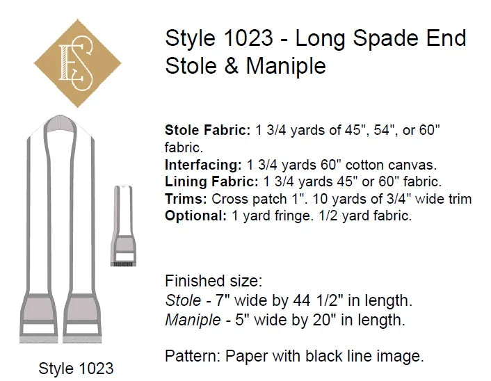 Priest Long Spade End Stole and Maniple Sewing Pattern | Traditional Latin Mass Stole Style 1023