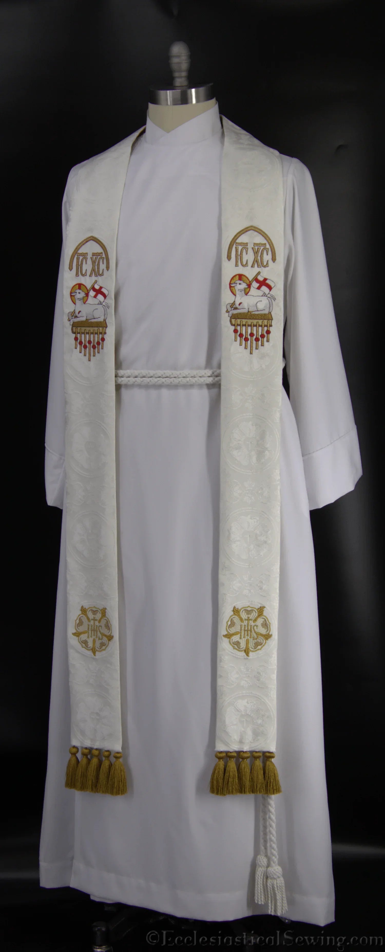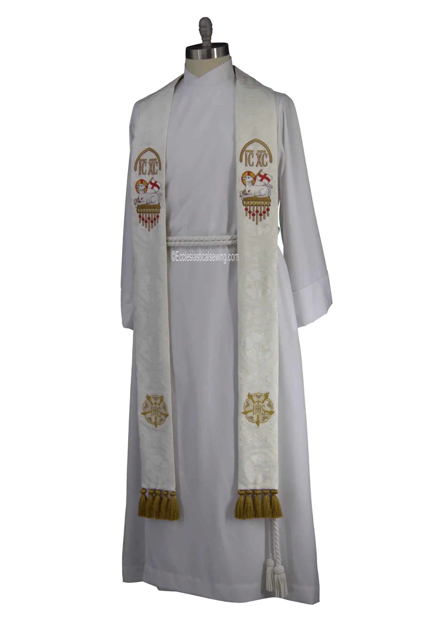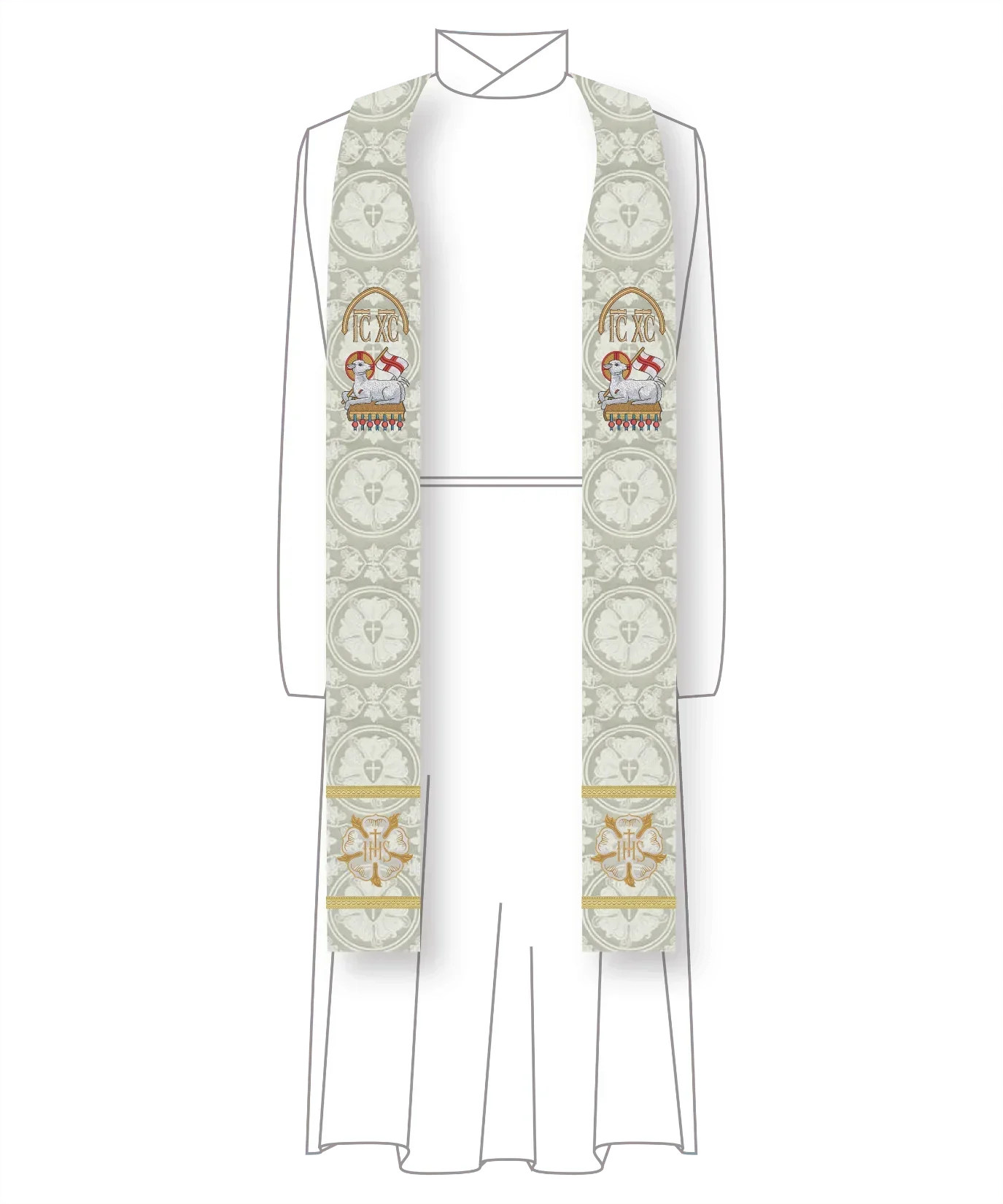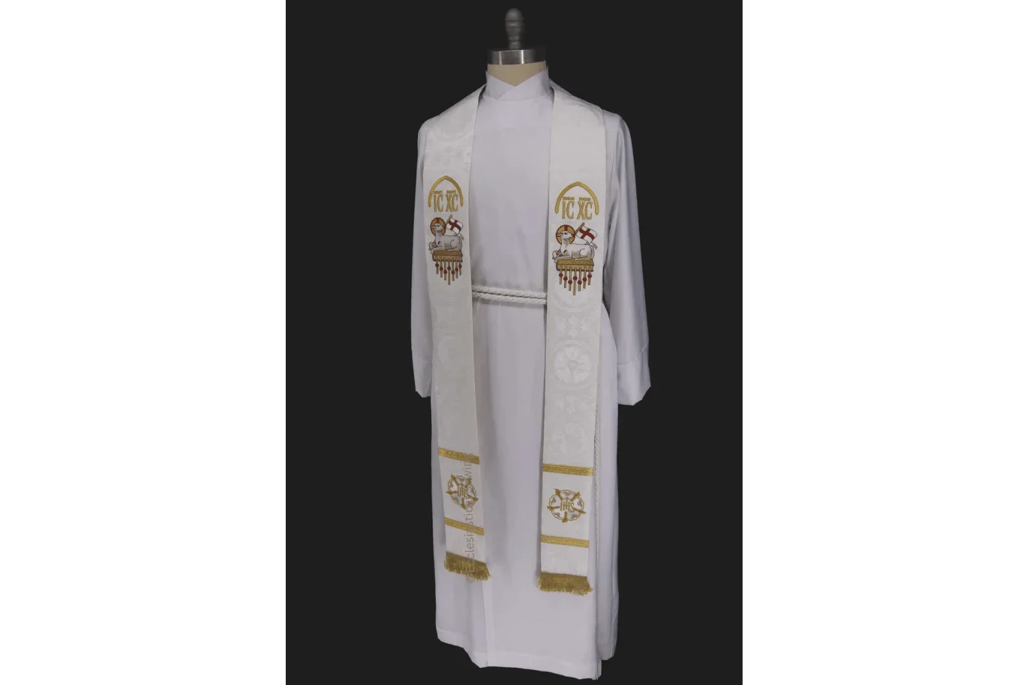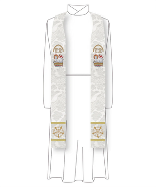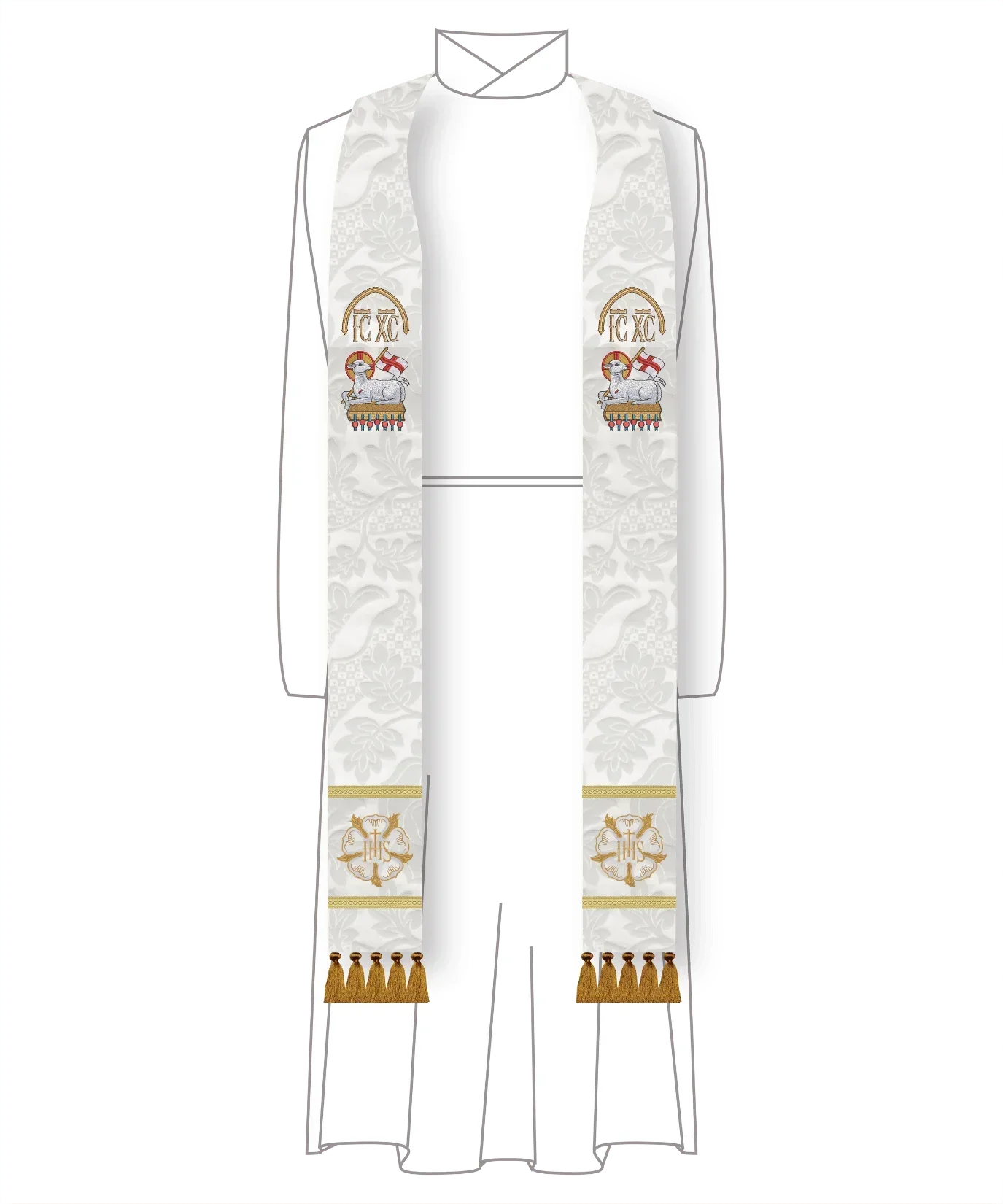 White Clergy Stoles With Christmas Rose - Easter Collection Style #5