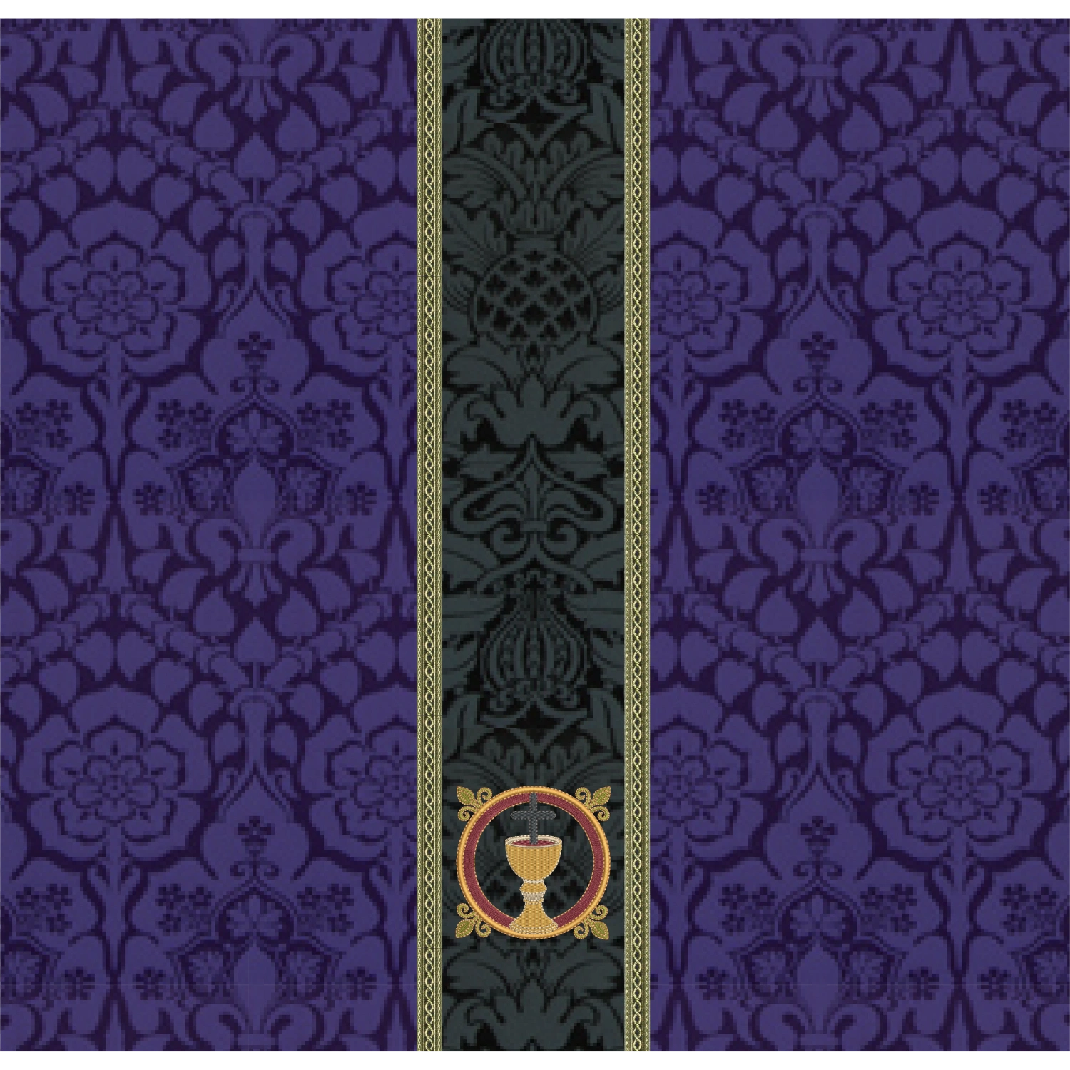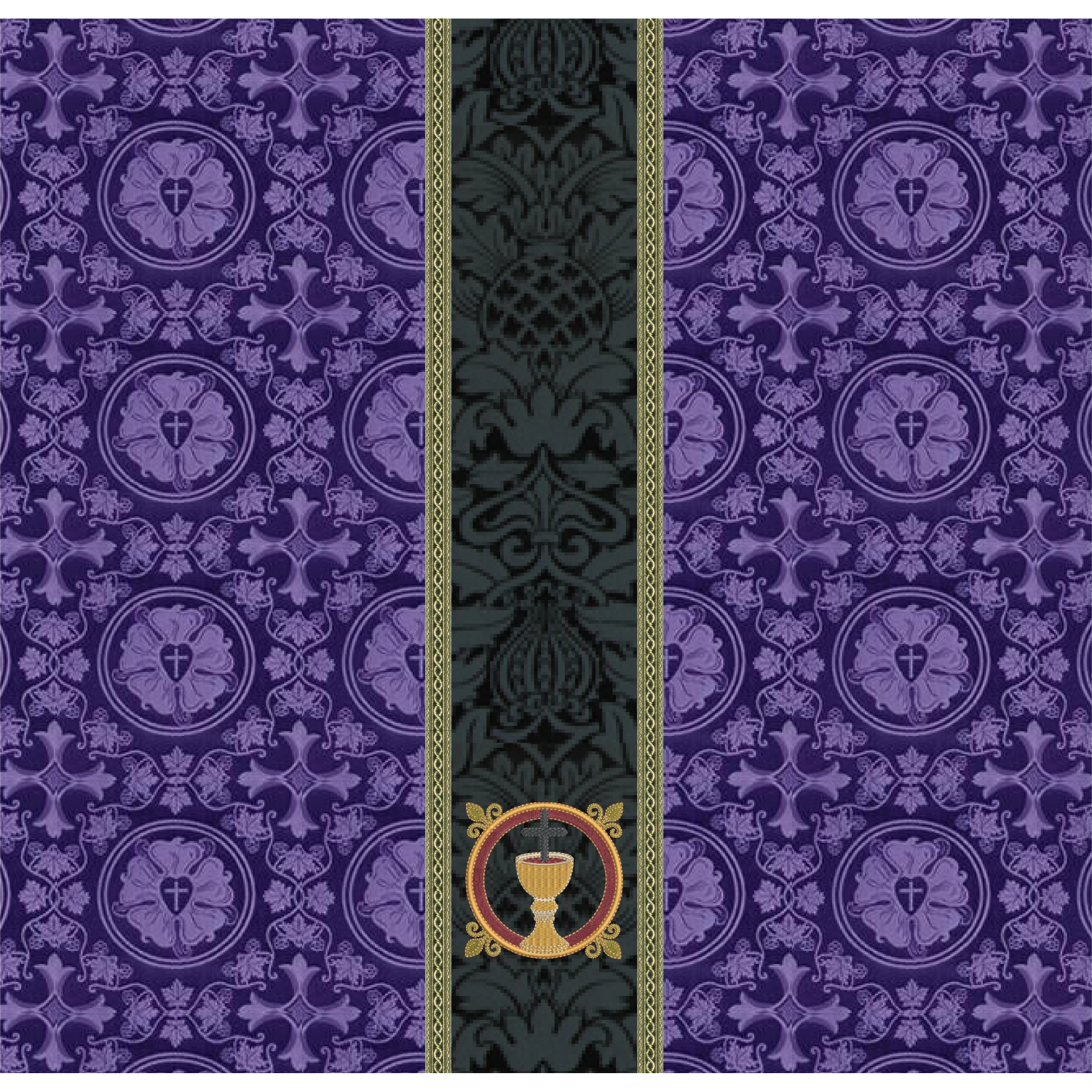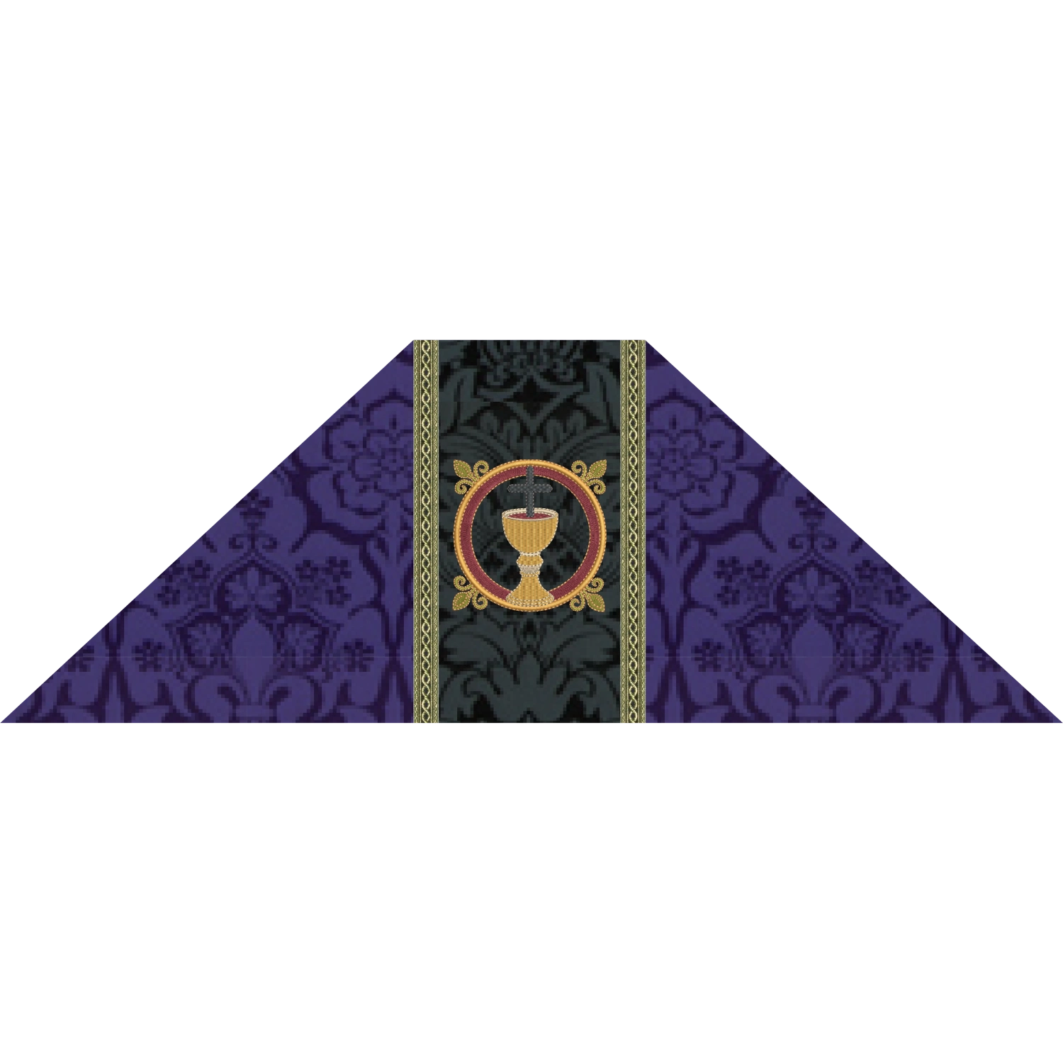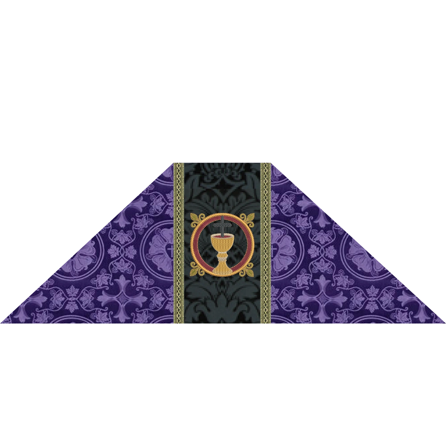 Violet Chalice Veil with black orphrey band embroidery with chalice design for Lent. A matching burse is available as custom request.
