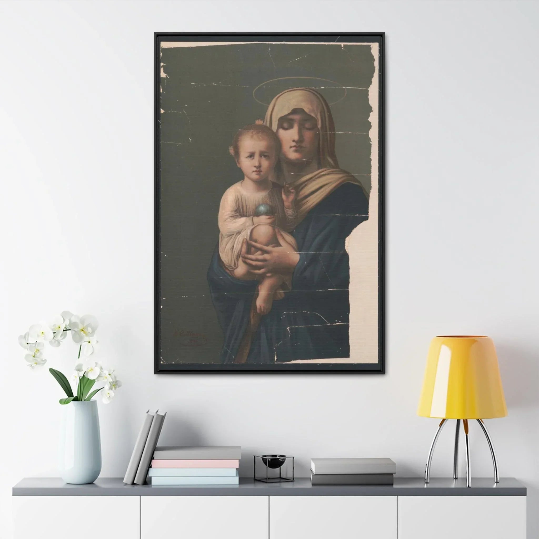 House Warming Gift Premium Canvas Wrapped Framed Office Wall Art: Madonna and Jesus Holding the World Celebrate the joy of a new home and elevate the atmosphere of any office with our premium canvas wrapped framed wall art. This remarkable piece features the iconic image of Madonna and Jesus holding the world, serving as a symbol of love, protection, and divine presence. Meticulously crafted, our canvas wrapped framed wall art showcases the intricate details and emotional depth of the original artwork. The vibrant colors and gentle brushstrokes bring the scene to life, making it a captivating focal point for any office space. The premium canvas wrapping and sturdy frame enhance the overall presentation and durability of this exquisite artwork. It's a perfect housewarming gift, combining timeless beauty with meaningful symbolism, creating an inspiring and comforting presence in any new home or office. Display this exceptional piece in your office, bringing a touch of spirituality and inspiration to your workspace. Let the Madonna and Jesus holding the world serve as a reminder of faith, strength, and the interconnectedness of humanity. Whether you're searching for a housewarming gift or looking to enhance your own office decor, this premium canvas wrapped framed wall art is the perfect choice. Experience the profound beauty and serenity of Madonna and Jesus holding the world, and infuse your office with a sense of peace and divine presence. Embrace the transformative power of this remarkable artwork as you create a warm and welcoming office environment. Trust Ecclesiastical Sewing to provide you with this extraordinary housewarming gift, "Premium Canvas Wrapped Framed Office Wall Art: Madonna and Jesus Holding the World." .: 100% cotton fabric canvas .: Poplar wood frame with walnut or black finish .: High image quality and detail .: NB! For indoor use only