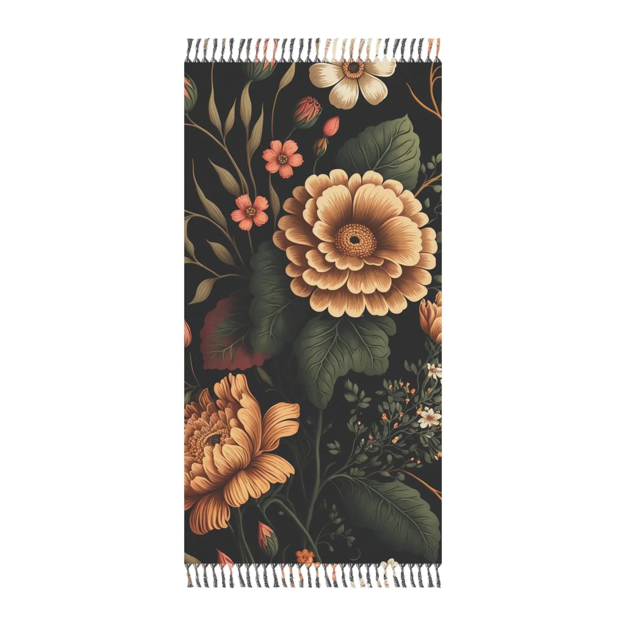 Summer Bliss: Print on Demand Boho Floral Beach Cloth Bring a touch of bohemian paradise to your beach day with this custom printed boho floral beach cloth. The on-demand printing process ensures that each cloth is made just for you, making it truly one-of-a-kind. The vibrant floral design will make you stand out on the beach, and the soft, absorbent material will keep you comfortable and dry. Whether it's chilling in the Great Outdoors or having fun at the beach, these boho beach (or boulder) cloths are the perfect take-alongs to keep you warm. Made with 100% soft polyester, these cover-ups come in a big size of 38" x 81" and are the perfect playful colorful Beach Day Buddy. .: 100% polyester .: One size: 38" × 81" (97cm × 206cm ) .: Thickness: 0.06''(1.5mm) .: One-sided print .: Knotted tassels on edges. Made to Order. Allow 3 - 8 Extra Days to Ship.