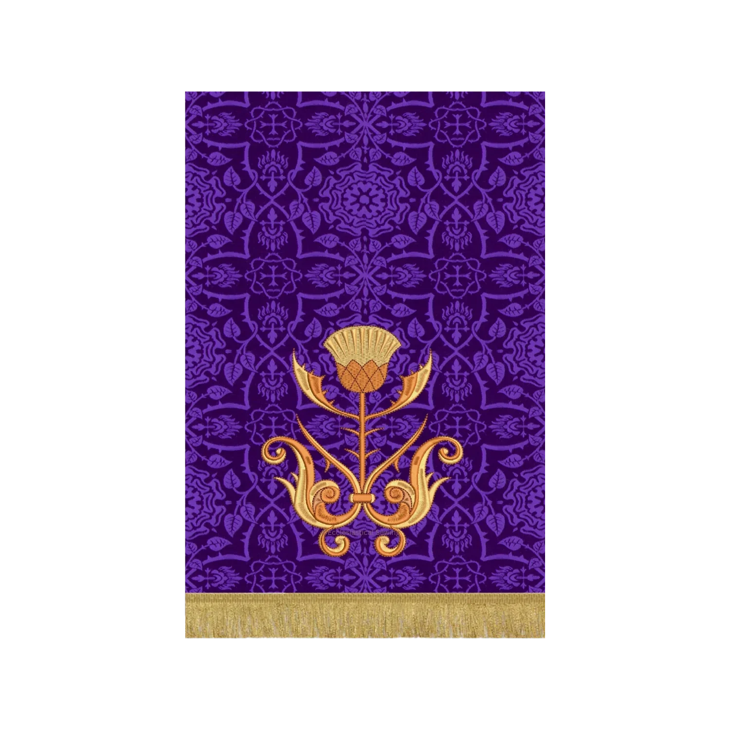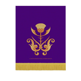 Add a touch of elegance to your Lenten services with our stunning Thistle Embroidery Pulpit Fall. Made with a luxurious violet brocade, this pulpit fall is beautifully accented with gold tone thistle embroidery. Its intricate design and rich colors make it a perfect addition to your church's worship collection. Elevate your Lenten services with this beautiful and meaningful Thistle Embroidery Pulpit Fall from our shop today.