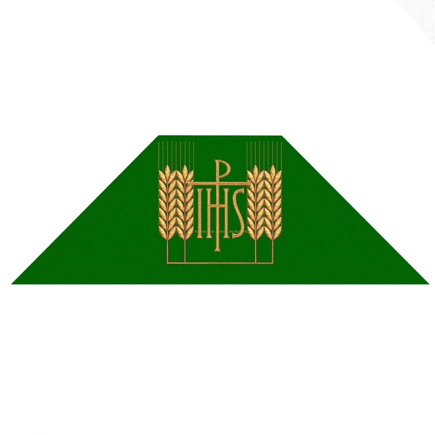 Chi Rho IHS Wheat Embroidery Chalice Veil or Burse | Trinity Green Burse or Veil