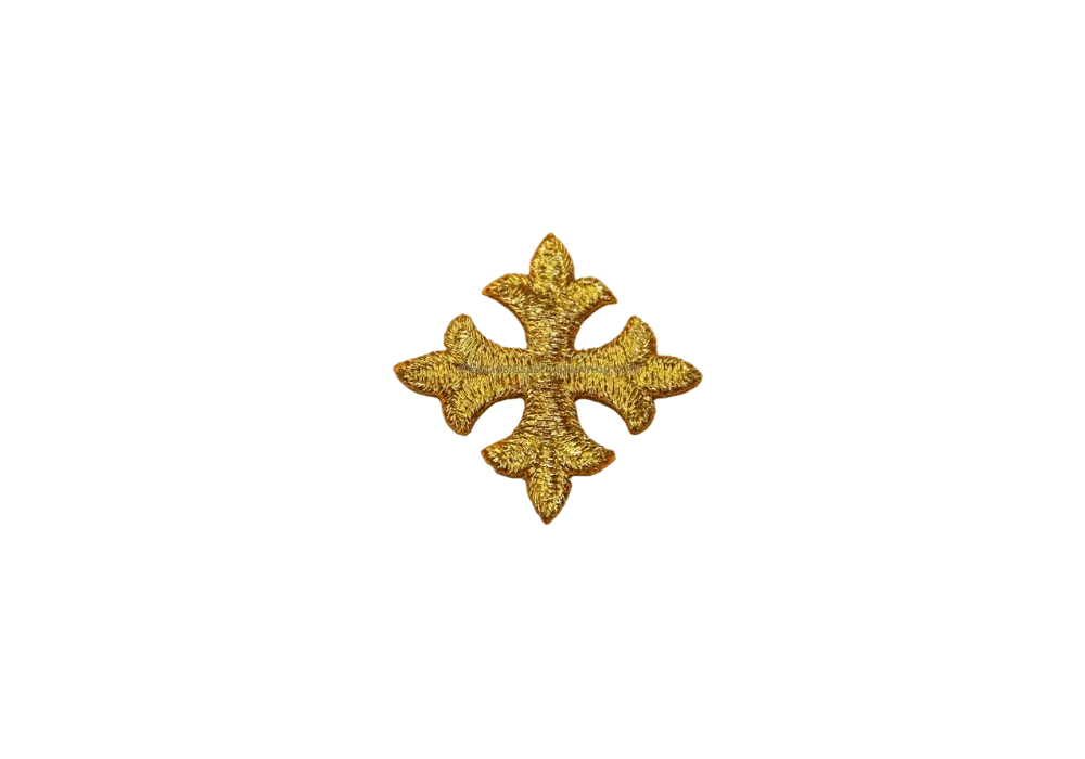 Small iron-on cross appliques are useful when time is tight and a cross is needed to adorn the back neckline of a stole or to adorn a burse, chalice veil, stole front, or other liturgical items. The crosses are embroidered appliques with an iron-on backing.