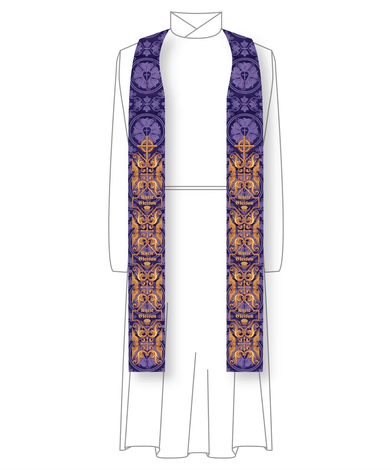 Elevate your Lenten services with our exquisite Pastor Stole. Made with luxurious violet brocade fabric, this stole is beautifully adorned with intricate thistle and thorn lattice embroidery. The combination of the rich color and delicate design make it a meaningful and eye-catching addition to your liturgical attire. Add a touch of elegance to your Lenten services with this beautiful Pastor Stole from our shop today.