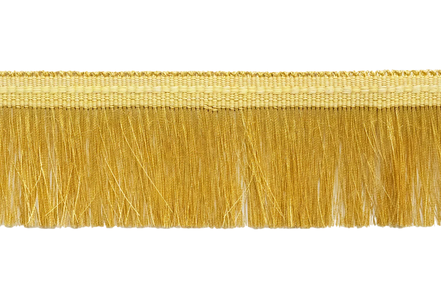 Metallic thread fringe is an excellent choice to add the perfect finishing touch to altar frontals, pulpit falls, stoles, and other liturgical vestment items. The 2" wide fringe is a bright gold which matches many of the metallic fiber fabrics.