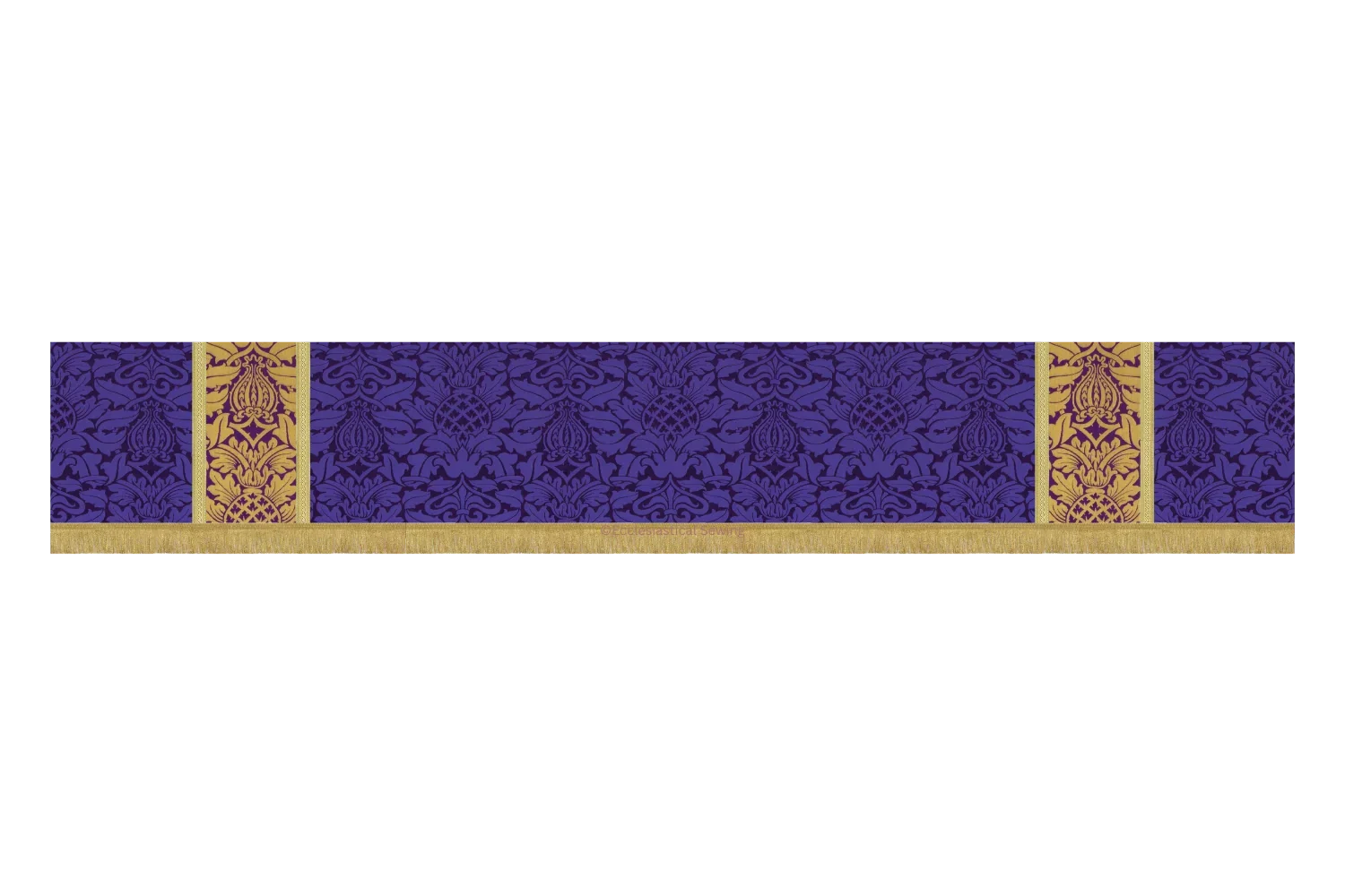 The Saint Ambrose Superfrontal is a beautifully made altar hanging designed for the Advent season. Crafted from high-quality Fairford brocade fabric. This superfrontal features intricate patterns and careful detailing, highlighting the importance of liturgical season.
