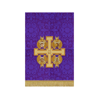 The falls are handcrafted from a fine European brocade fabric with intricate patterns that symbolize Christian love and faith. The deep violet color is suitable for Advent and Lent, reflecting themes of penitence and spiritual preparation.