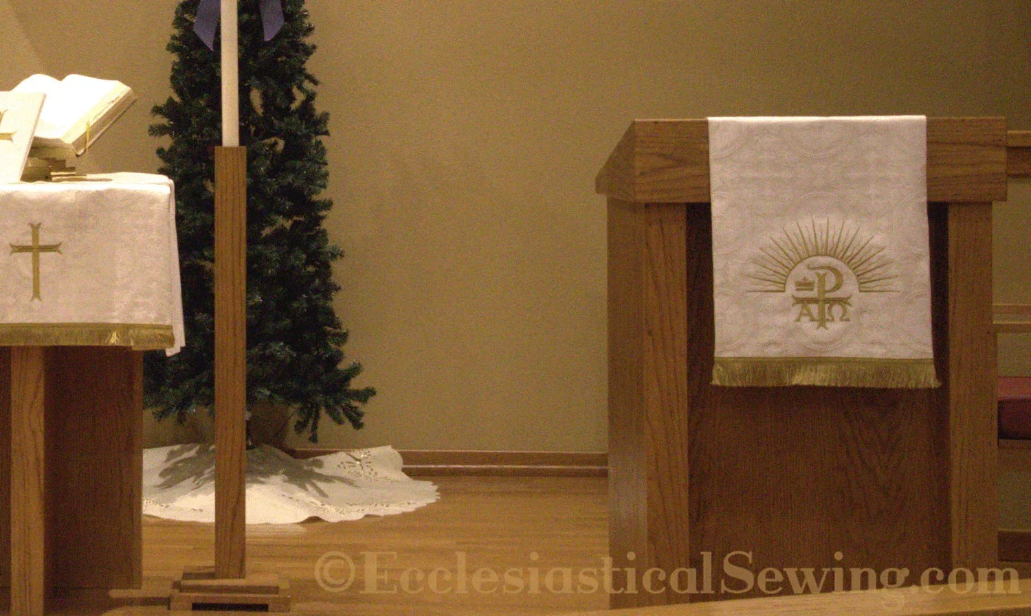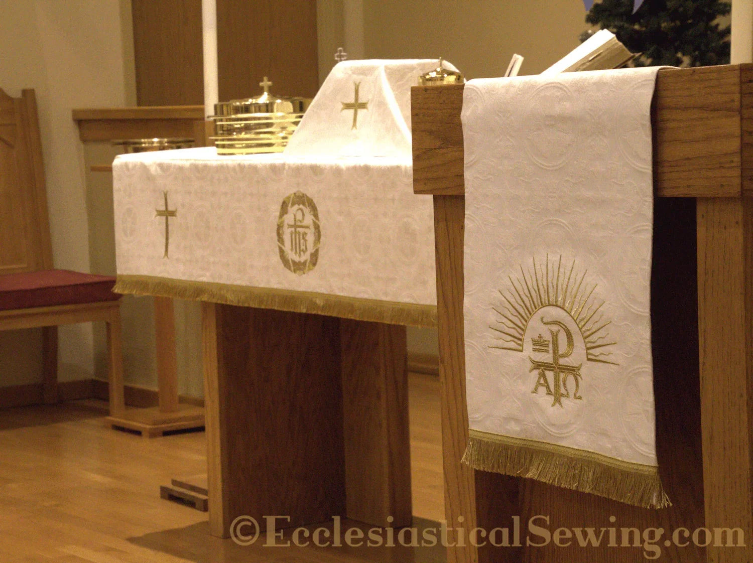 Ordina oggi il pulpito della tua chiesa con croce in stile Moline latino e fili d'oro metallici e sperimenta la bellezza e la qualità che solo i nostri prodotti possono offrire.