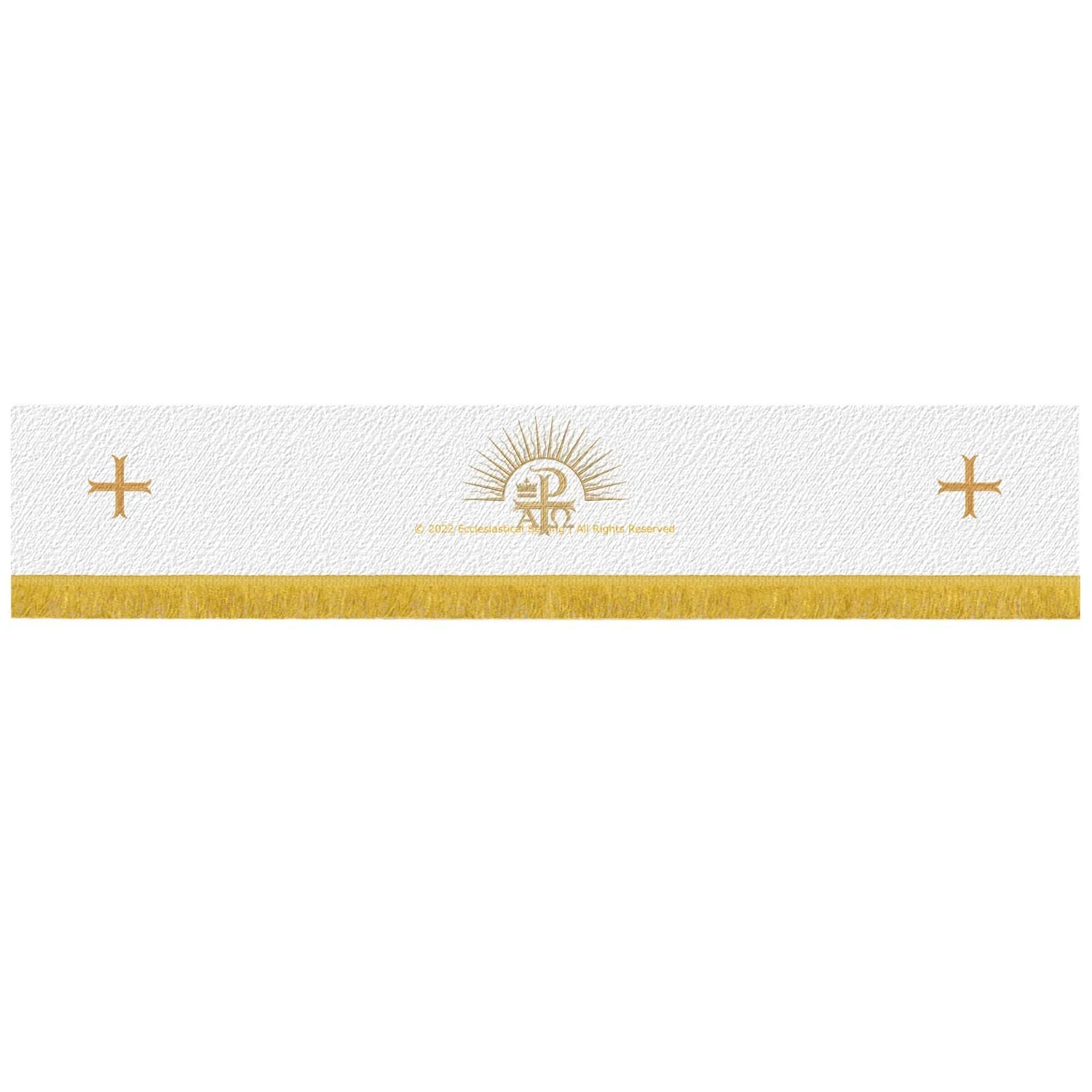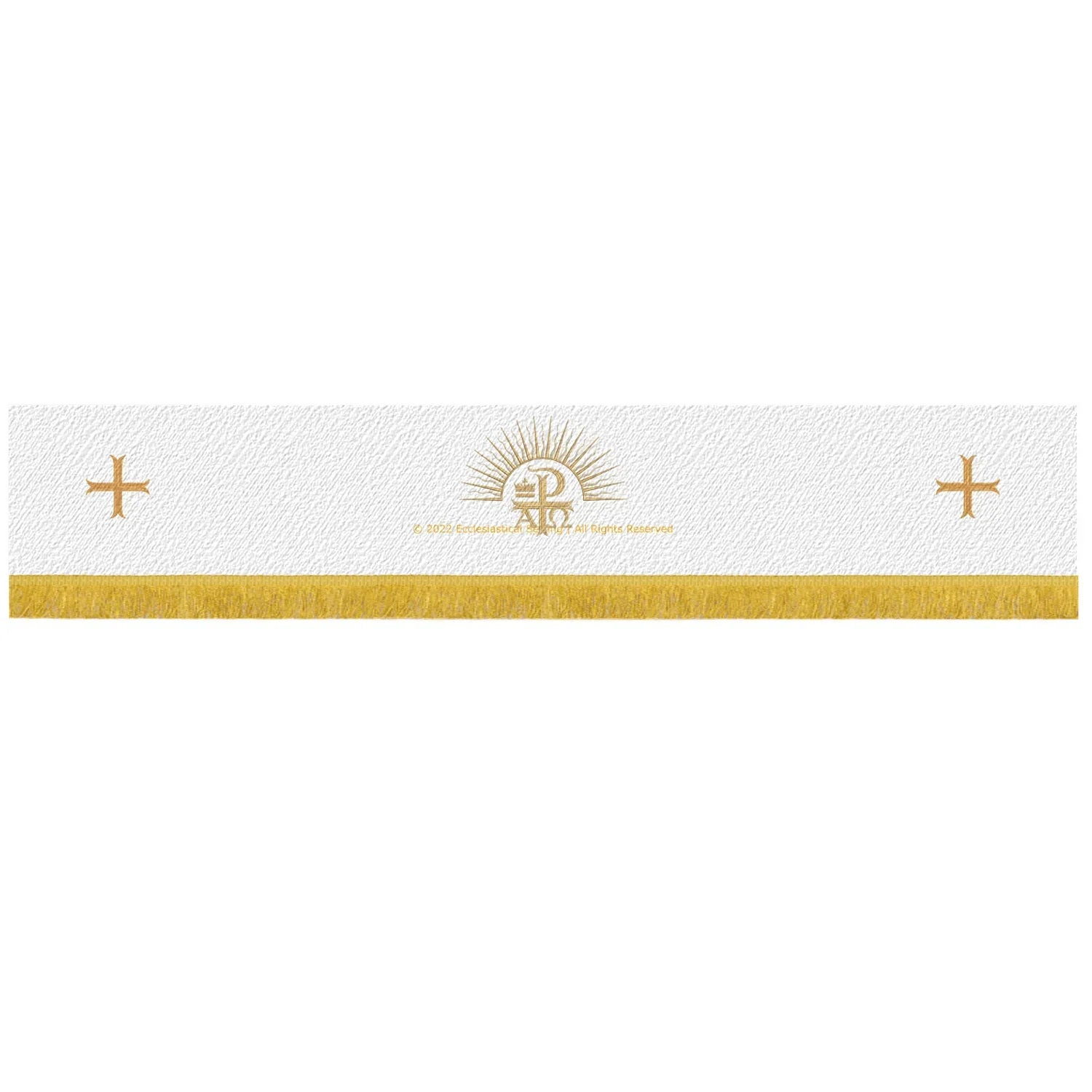 Gli arazzi per altare dal design accattivante della nostra collezione Dayspring sono perfetti per l'uso durante le stagioni natalizie e pasquali o ogni volta che vengono utilizzati paramenti bianchi. Il design presenta ricchi ricami dorati su fondo bianco.
