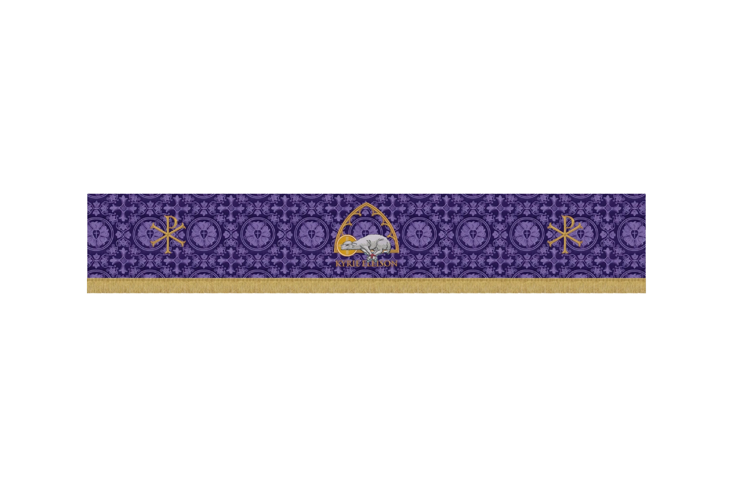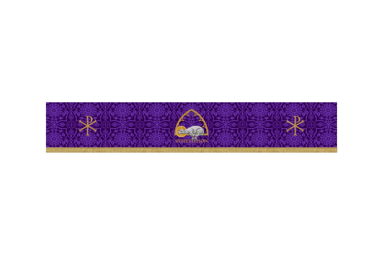 Violet Lent Superfrontal with Bound Agnus Dei, Lattice Arch & Chi Rho Ends Kyrie Eleison Collection