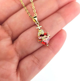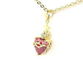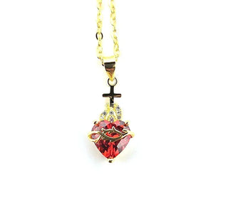 Crafted for you in real 925 sterling silver and plated in radiant 18K gold, this necklace features a vivid red cubic zirconia at its center symbolizing the burning love of the Sacred Heart of Jesus. It’s surrounded by delicate white stones, because your faith deserves beauty.
