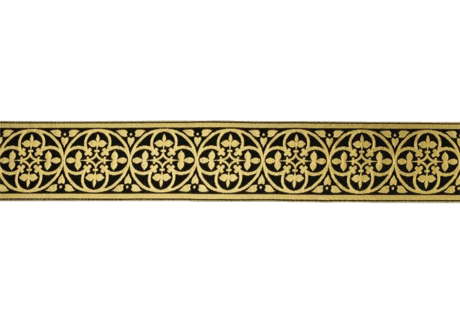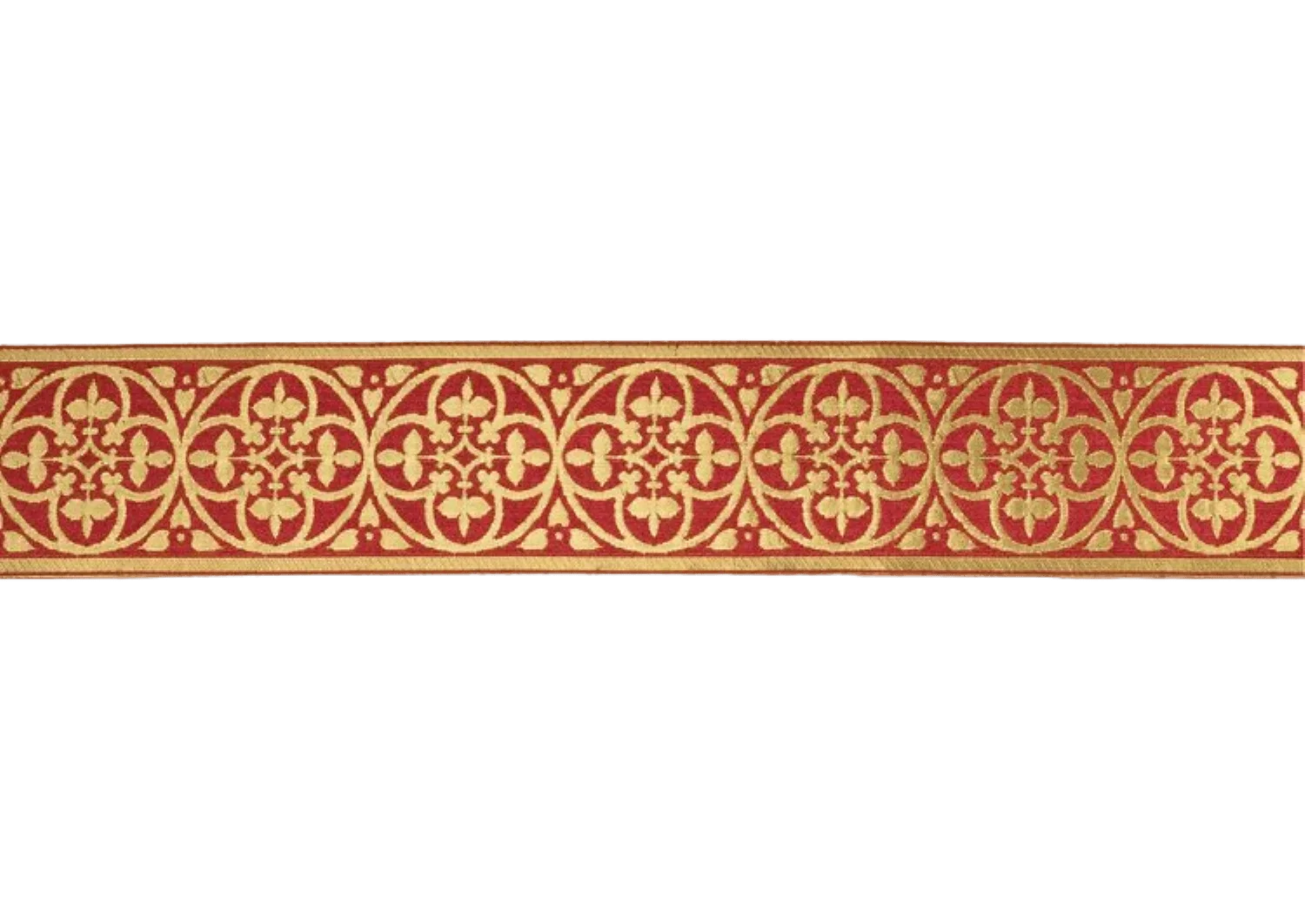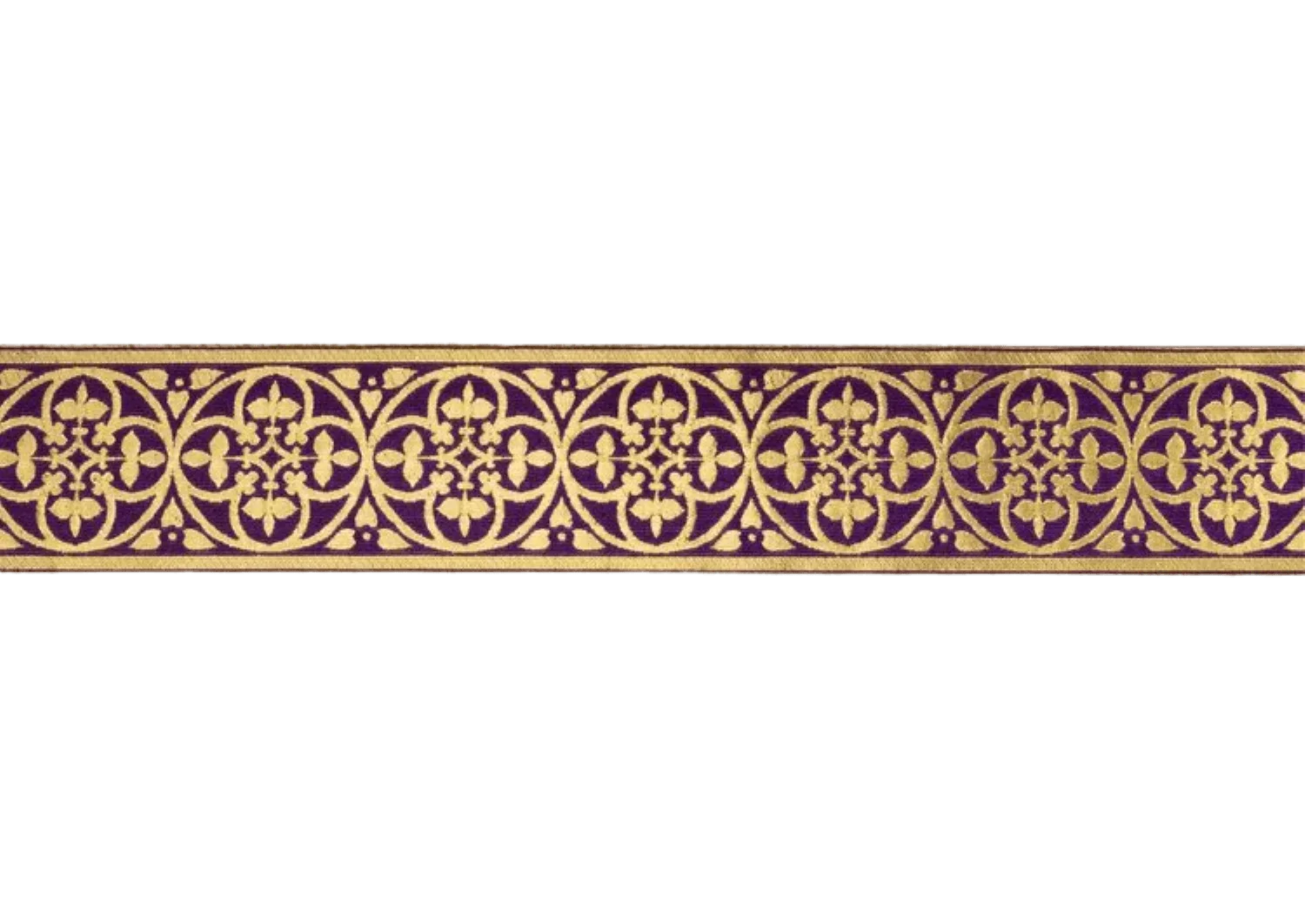 St. Dominic è un ricco stolone largo 3" che presenta motivi a croce e cerchio intrecciati in fili d'oro su uno sfondo colorato. Il semplice motivo ripetuto è elegante e sorprendente. Può essere usato da solo o centrato su un tessuto più ampio per creare sia semplici che elaborati disegni di orphrey.Questi disegni possono essere utilizzati su casule, stole, veli di calice, piviali, dalmatiche e tuniche, o anche arazzi d'altare.Disponibile in una gamma completa di colori, ce n'è sicuramente uno che funziona con il tuo prossimo progetto di cucito ecclesiastico .