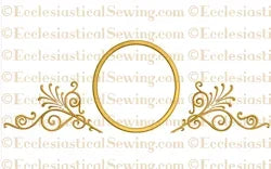 Un design elegante per l'uso su paliotti di chiese, cadute di pulpiti e persino su tovaglie da chiesa. Questo design presenta delicati motivi spray che circondano un cerchio. Ci sarà una varietà di design (venduti separatamente) che possono adattarsi al cerchio per creare un look personalizzato unico.