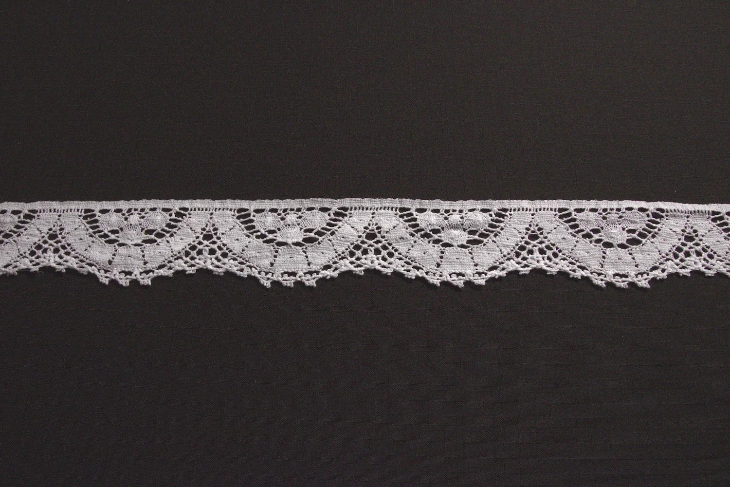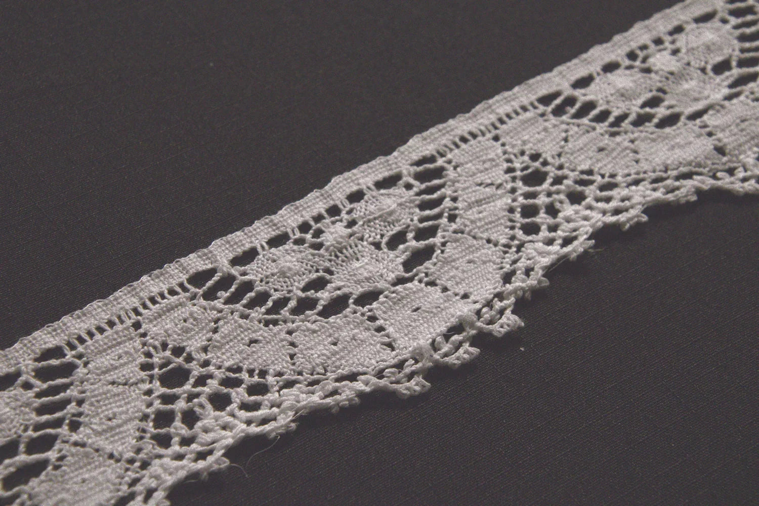 This lace is gentle, lovely, and made with care. It’s 2 inches wide and has tiny flower-like shapes called rosettes. The design is calm and peaceful just right for altar cloths, Communion clothes, or family keepsakes.