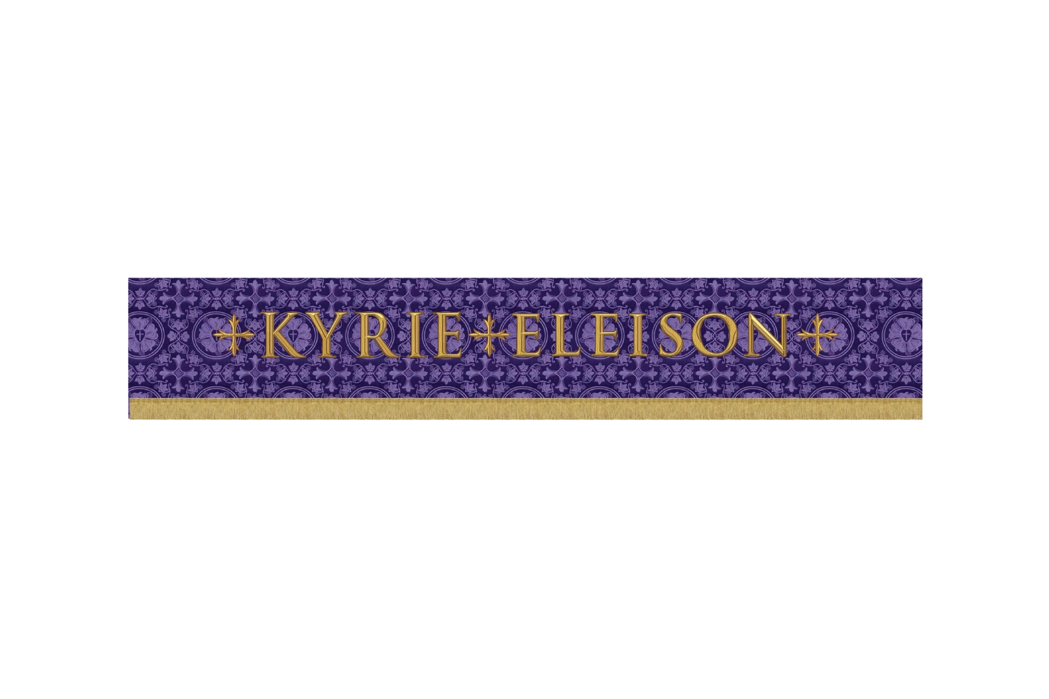 This violet brocade Lenten superfrontal features the sacred prayer “Kyrie Eleison”—Greek for “Lord, have mercy”—framed by elegant embroidered crosses. During Lent, this ancient refrain becomes the heart-cry of the Church, calling the faithful to repentance, humility, and a deeper return to God.