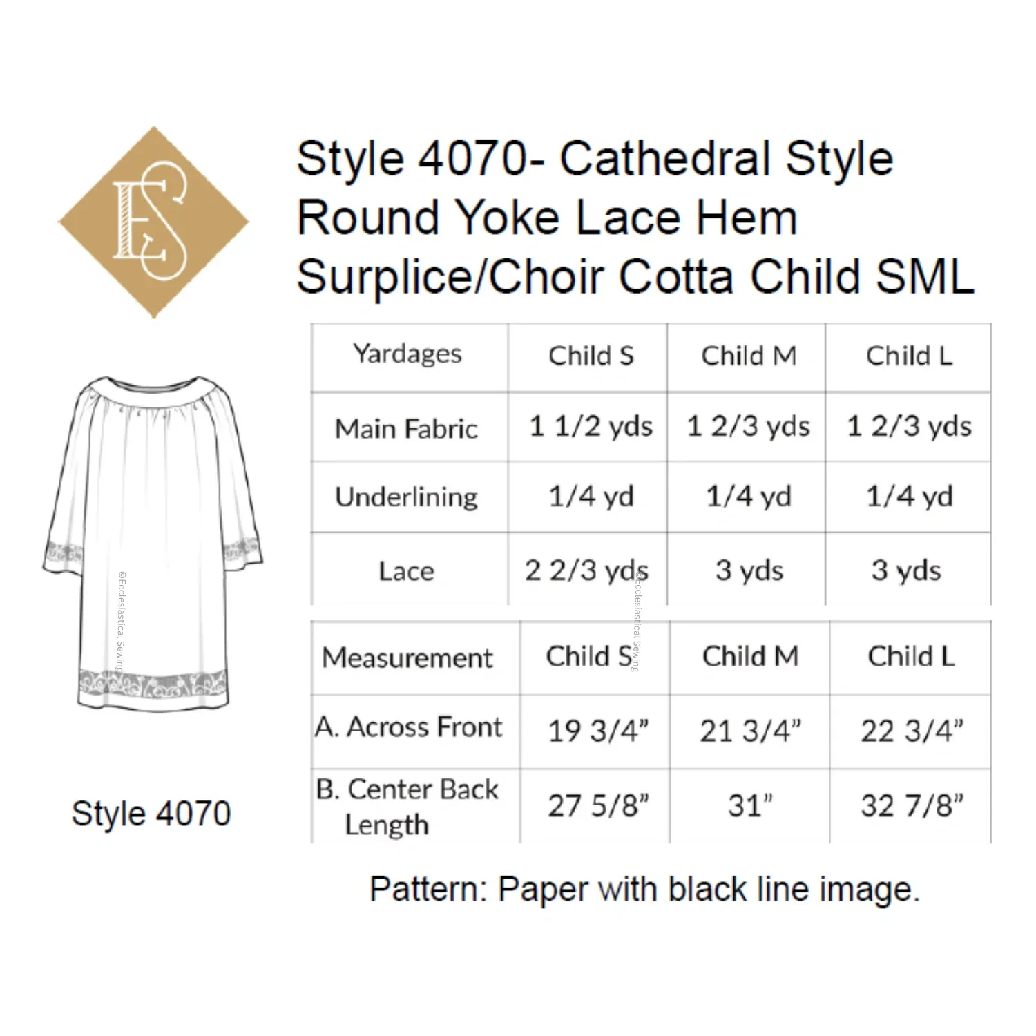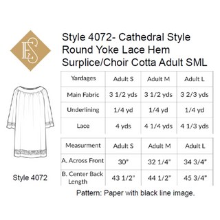 Cathedral Surplice Sewing Pattern | 4070,4071,4072,4073 Round Yoke Choir Cotta with Lace Hem