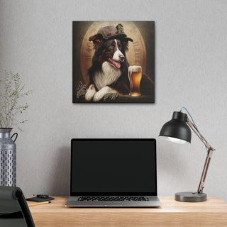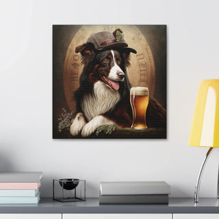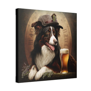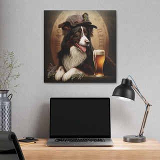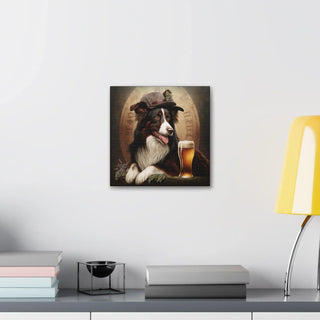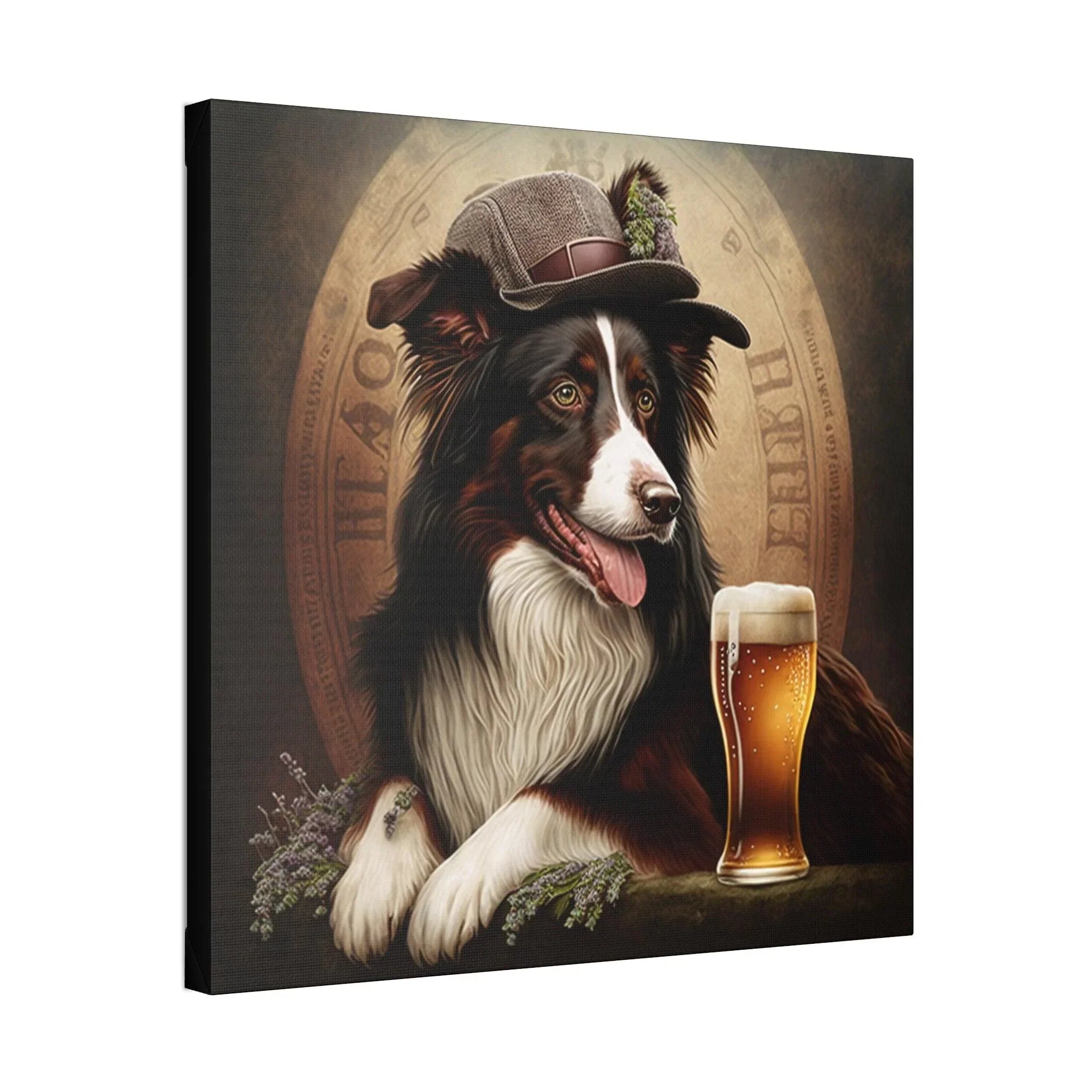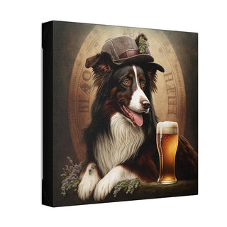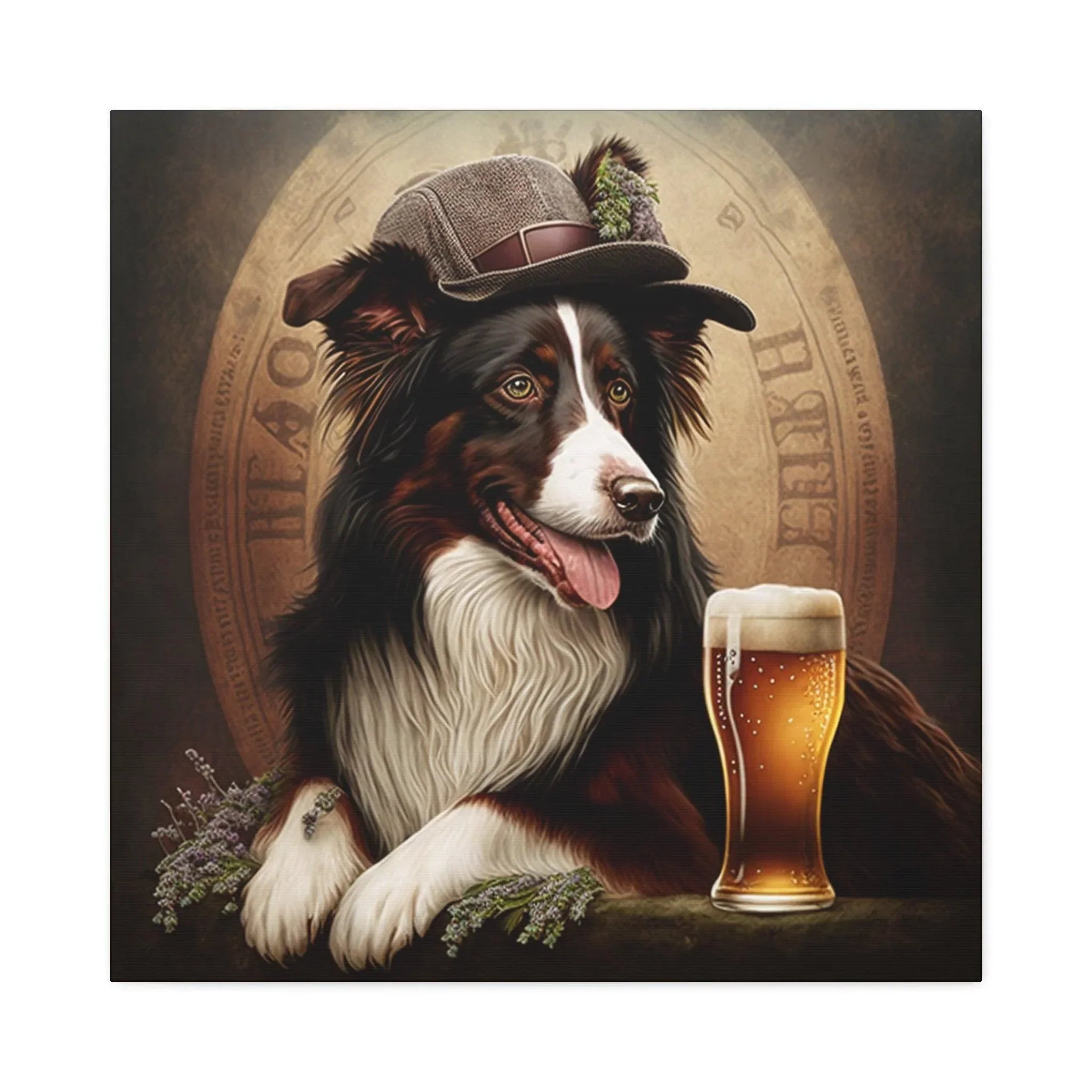 Art Nouveau Style Border Collie with Beer Canvas Print - Dog Lover Gift, Home Decor