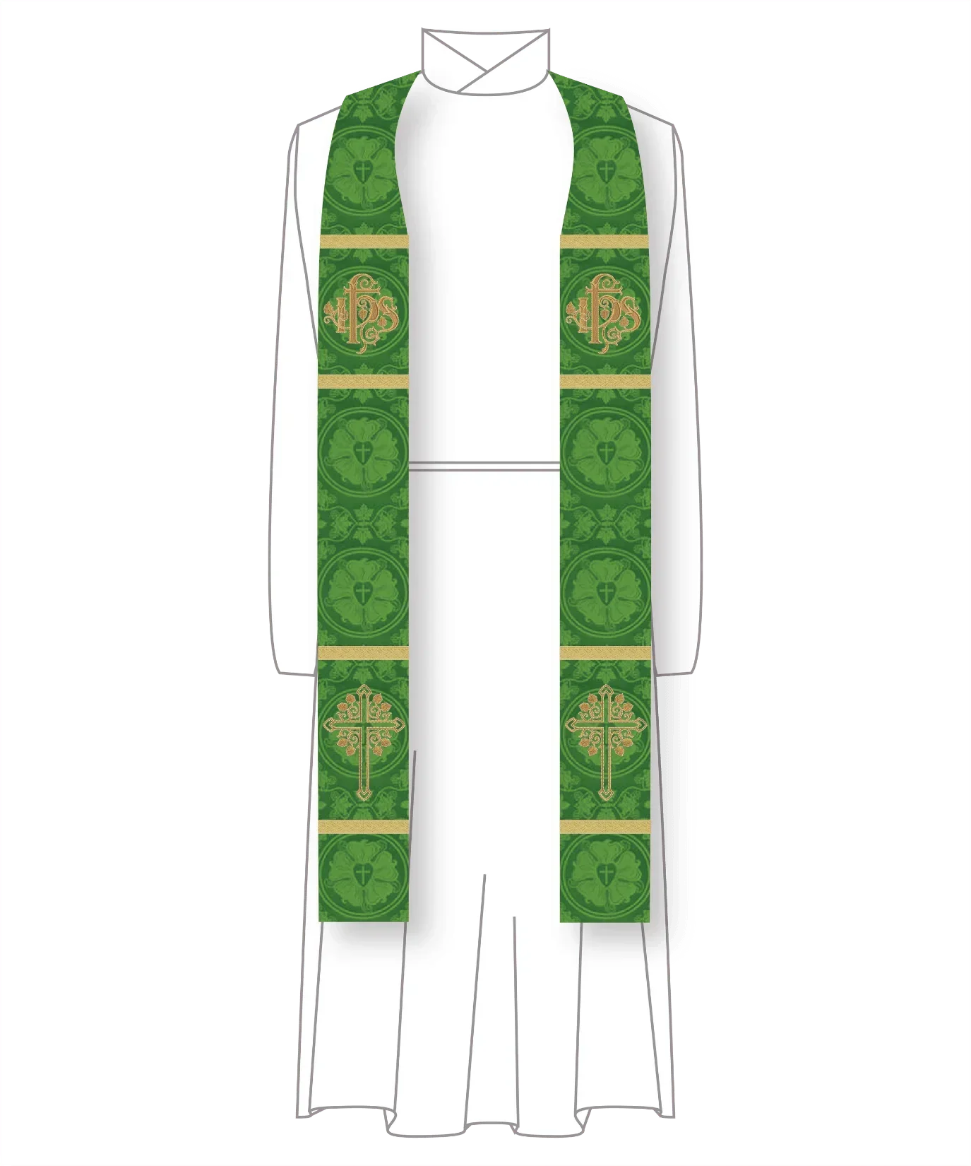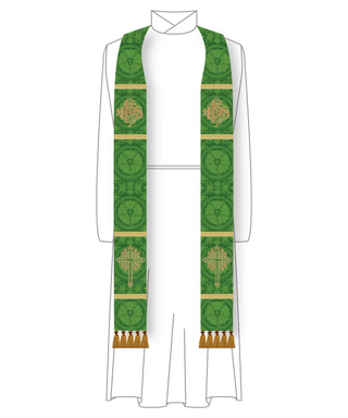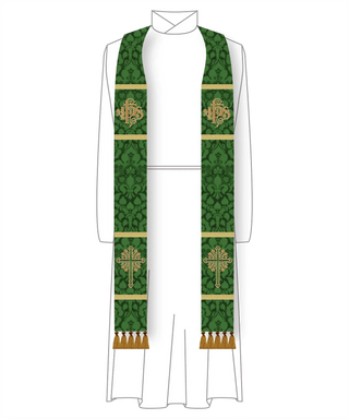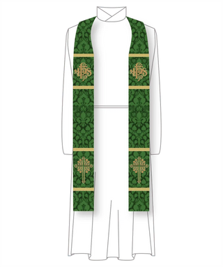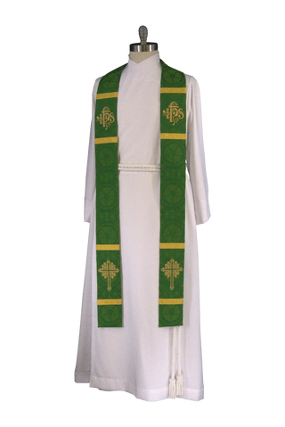 Green IHS Budded Cross Stole | Green Pastor Priest Trinity Stole
