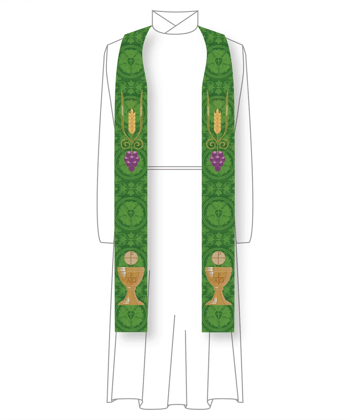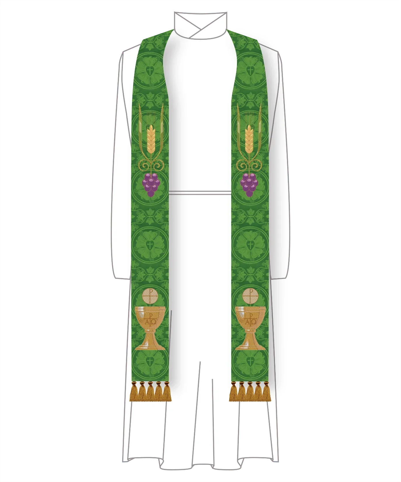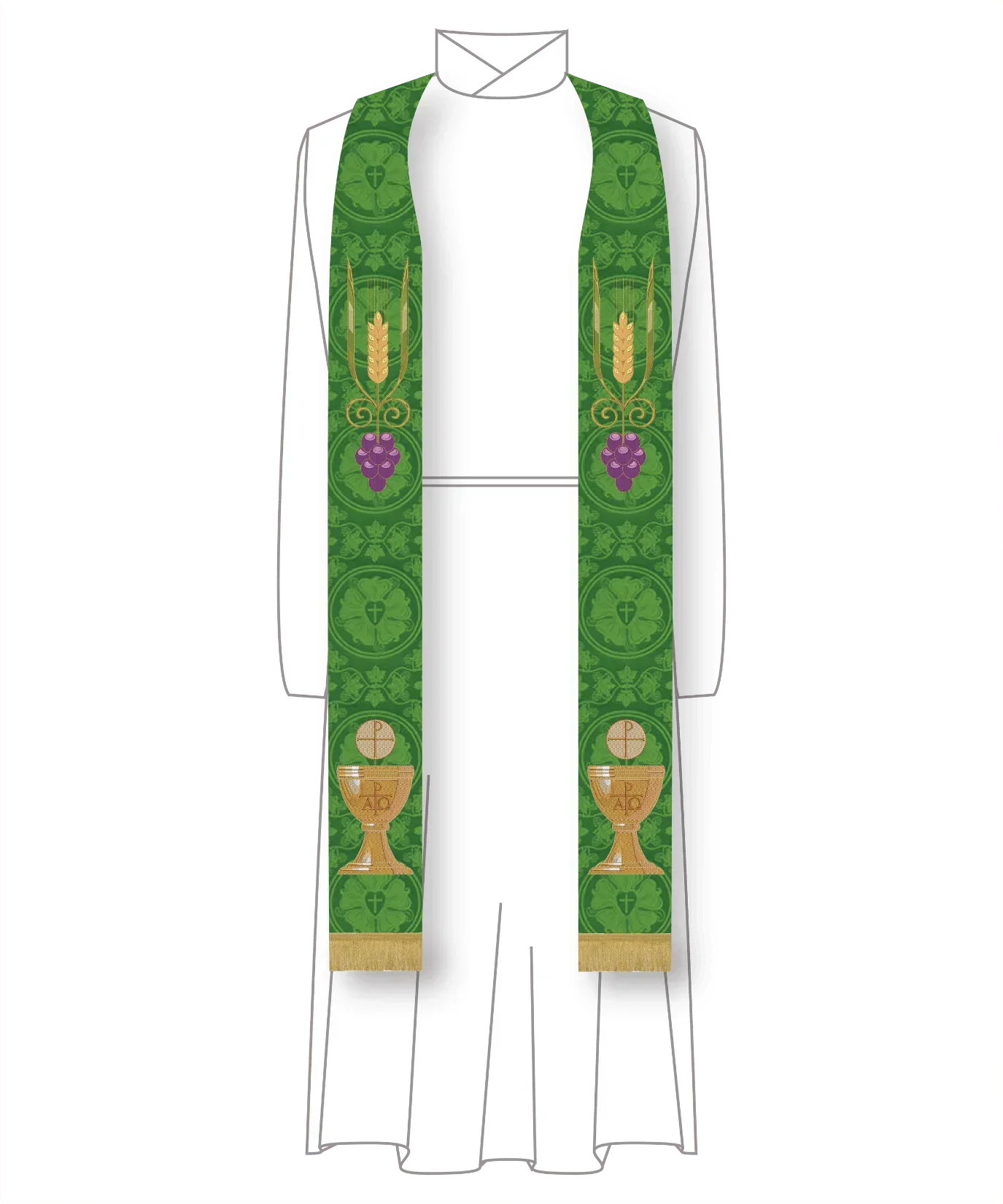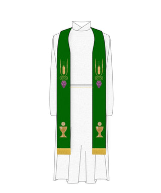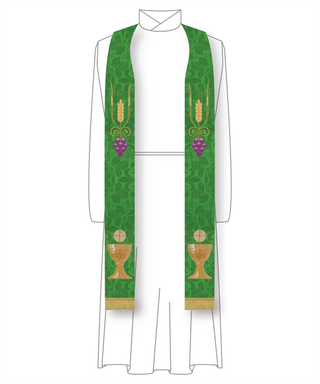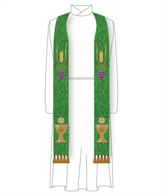 Green Pastor Priest Stole Grapes Chalice Design | Green Trinity Stole