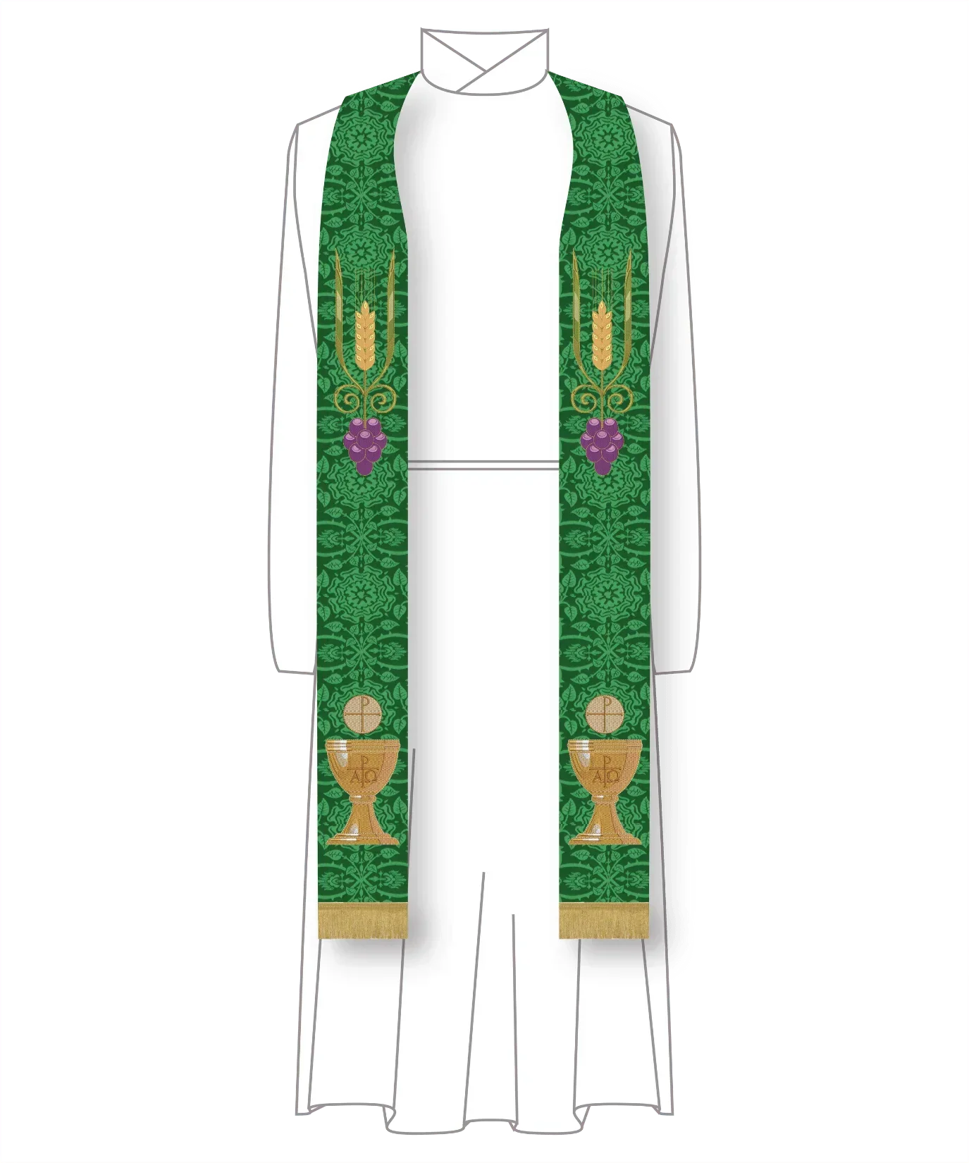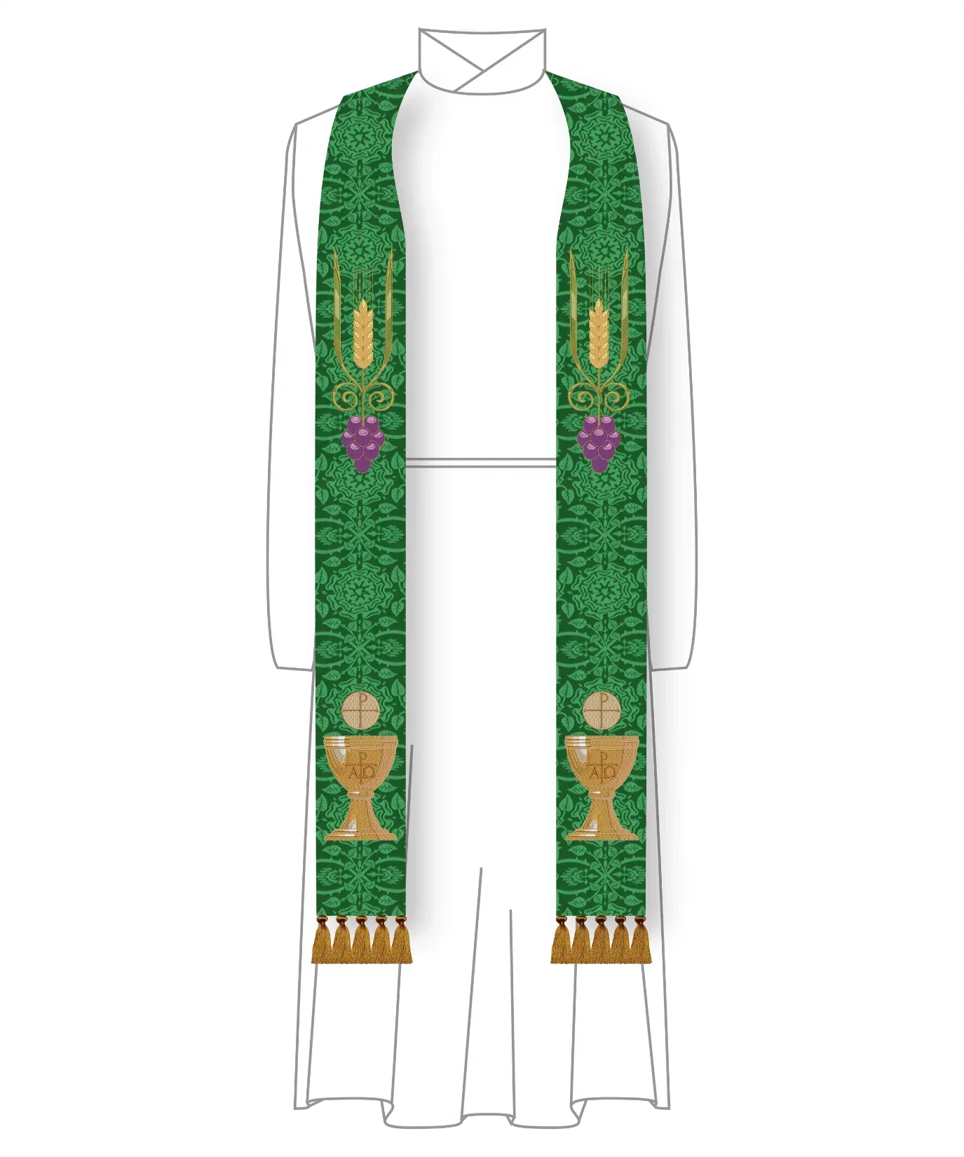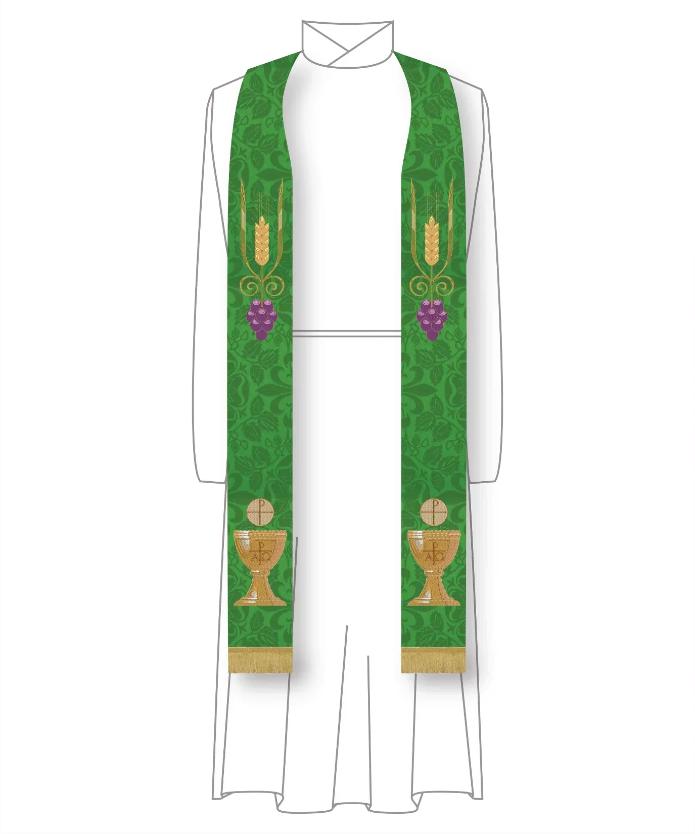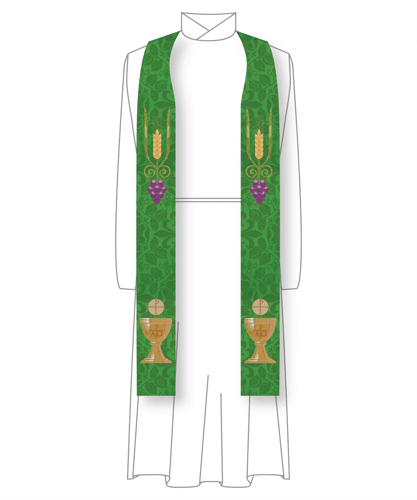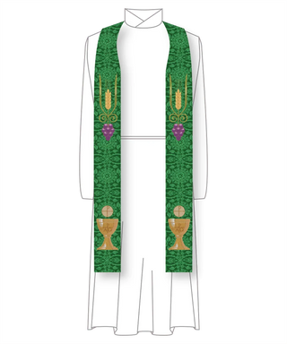 Green Pastor Priest Stole Grapes Chalice Design