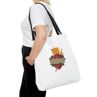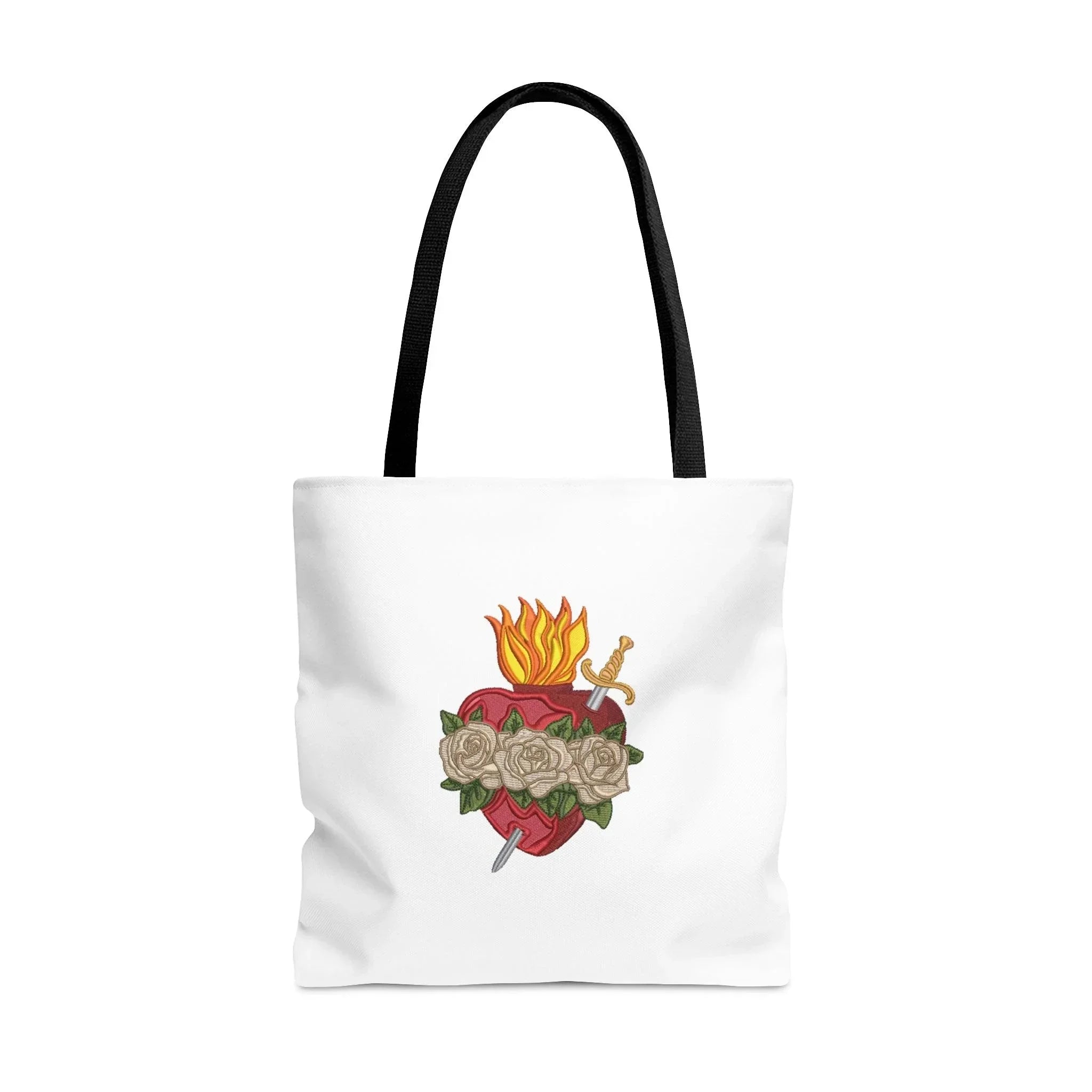 Introducing the perfect gift for your girlfriend who embraces her Christian faith, the Immaculate Heart of Mary Christian Tote Bag. This elegant and meaningful tote bag is not only a practical accessory but also a beautiful expression of devotion and love. Crafted with care and attention to detail, this tote bag features a stunning depiction of the Immaculate Heart of Mary, a symbol of her deep compassion and maternal love. The vibrant colors and intricate design showcase the beauty and grace of this sacred image, making it a truly captivating piece. Constructed from durable and eco-friendly materials, this tote bag is designed to withstand everyday use and carry all of your girlfriend's essentials. The spacious interior provides ample room for books, groceries, or personal items, making it an ideal companion for shopping trips, beach outings, or simply running errands. The Immaculate Heart of Mary Christian Tote Bag is not just a fashionable accessory, but also a visual reminder of faith and spirituality. Each time your girlfriend carries this bag, she'll be reminded of the unconditional love and guidance that Mary offers, drawing her closer to her Christian beliefs. Surprise your girlfriend with this thoughtful and stylish gift that combines fashion and faith. Whether she's heading to church, Bible study, or simply wants to showcase her devotion in her everyday life, this tote bag is a perfect companion. Celebrate her Christian faith and devotion with the Immaculate Heart of Mary Christian Tote Bag, available exclusively on Etsy. Let her carry the symbol of love, compassion, and faith wherever she goes, and make a lasting impression with this special gift. Order now and give her a beautiful reminder of her faith that she can cherish for years to come. This practical, high-quality Tote Bag is available in three sizes. All over print provides comfort with style at the beach or out in town. Made from reliable materials, lasting for seasons. .: 100% Polyester .: Boxed corners .: Black inner stitching, transparent thread on hems. .: Black cotton handles .: With non-woven laminate inside .: NB! Size tolerance 0.75" (1.9 cm)) .: Assembled in the USA from globally sourced parts