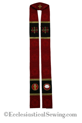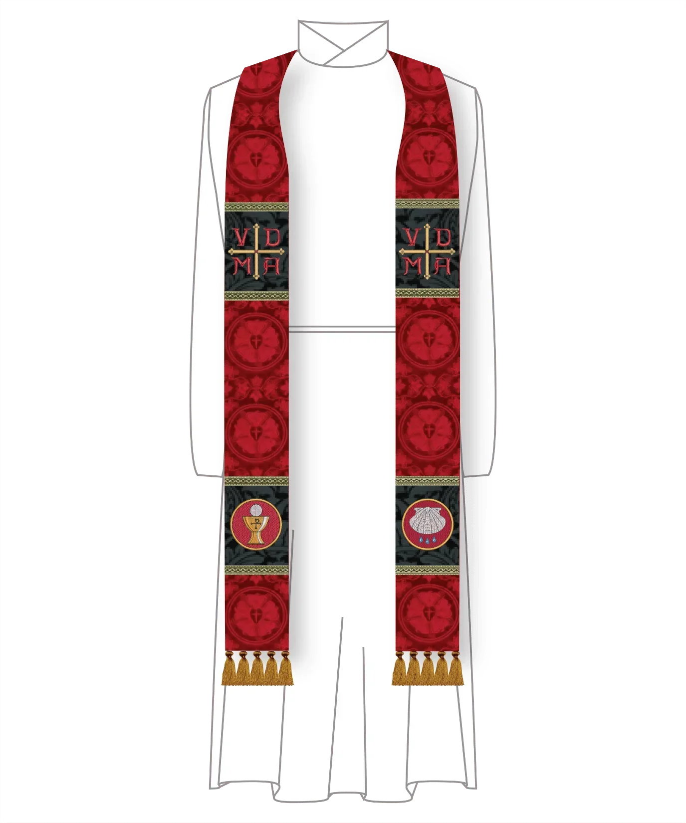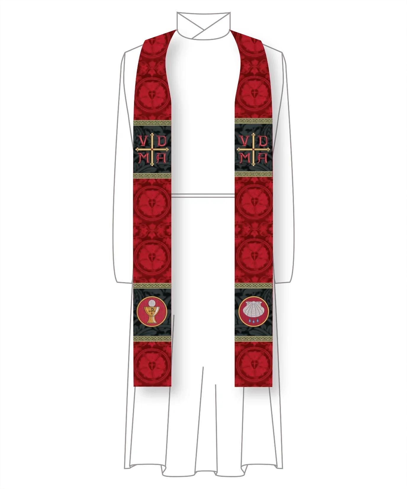 The VDMA is the top embroidery for this style of the stole in this collection. Options for lower embroidery include: