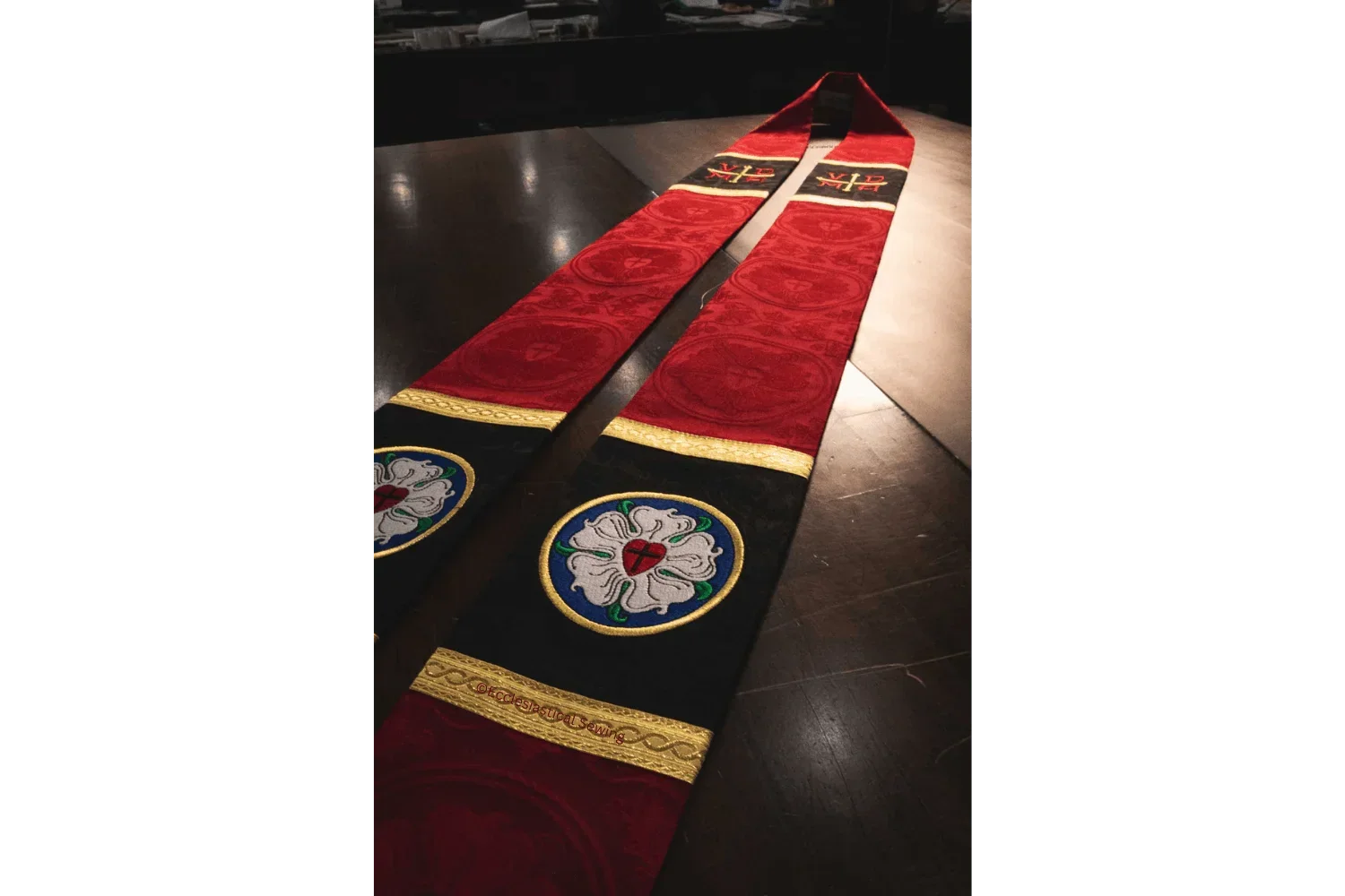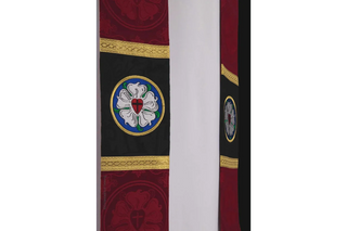 •  Luther Rose embroidery (either red or green)