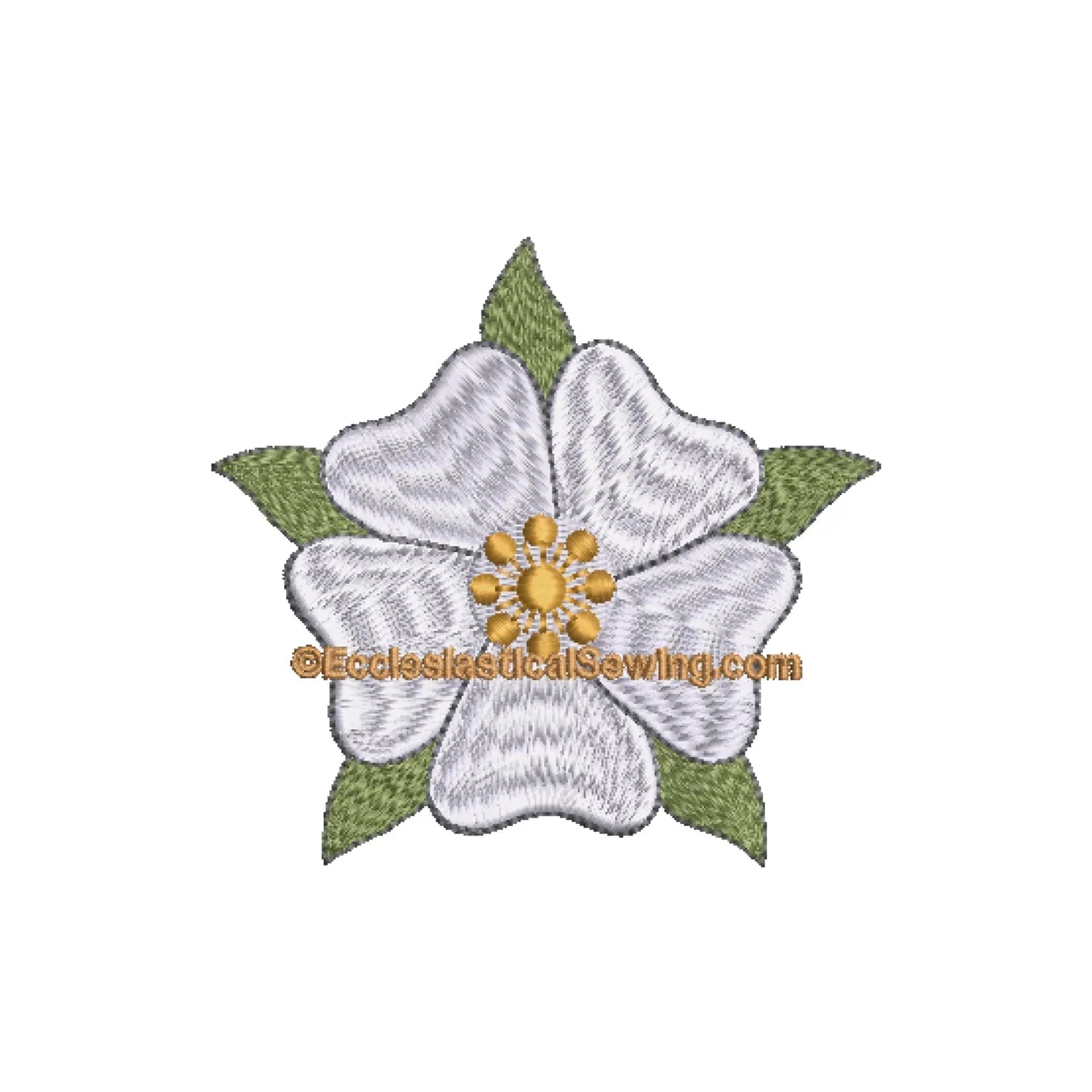 The Christmas Rose or Messianic Rose design is a small white flower steeped in tradition as a gift given to the Christ Child. The Messianic or Christmas Rose design is available in 2", 3.5", 5", and 7.5" sizes for use on vestments such as stoles, pulpit falls, chasubles, and altar frontals as well as on craft, fashion, or other projects. The Rose is referred to in Isaiah where it states that the desert shall blossom as the Rose at the coming of the Kingdom of Righteousness. The Rose, a symbol that dates to the 13th Century, is frequently found in Gothic Architecture.