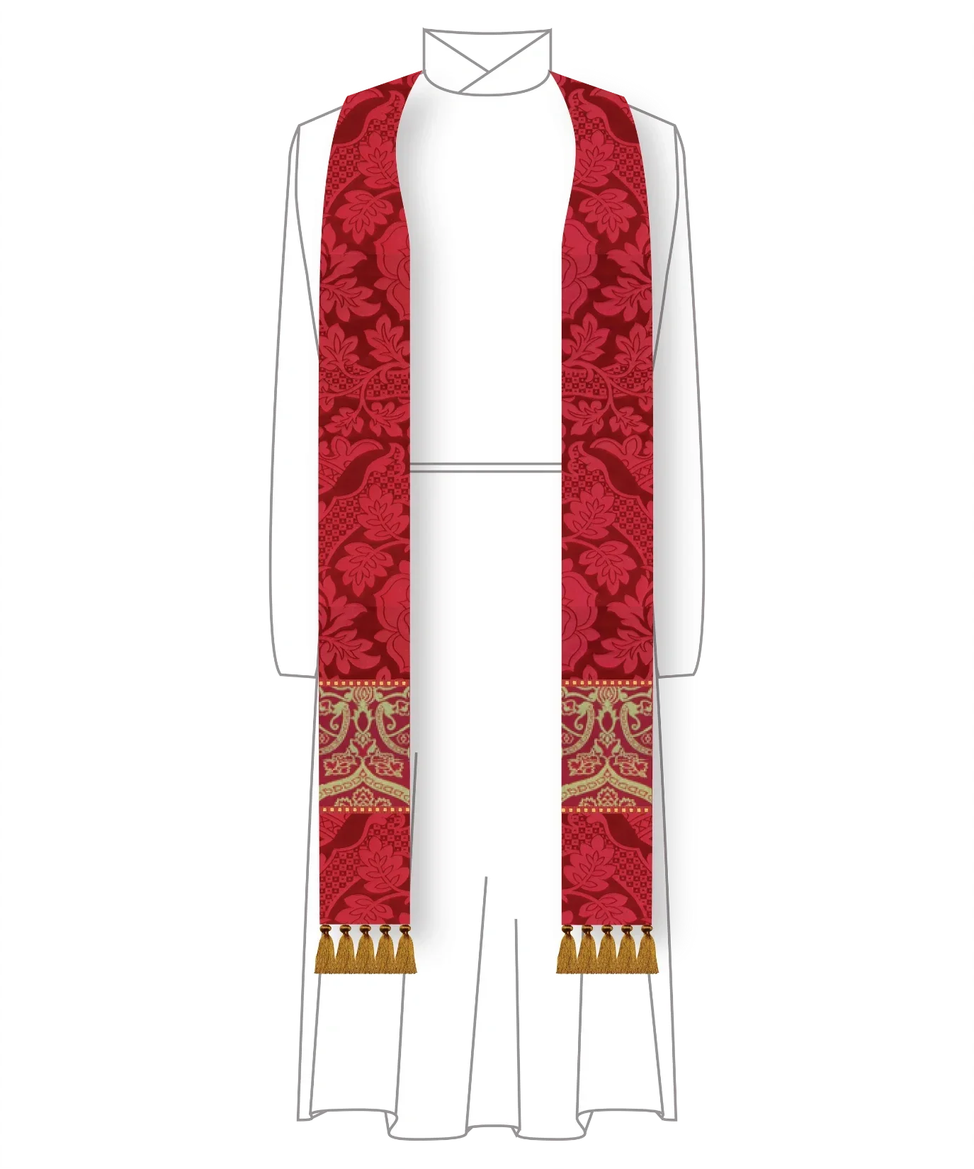 Red Pastor Stole with Red Wakefield Orphrey Bands | Red Pastor Priest Stole