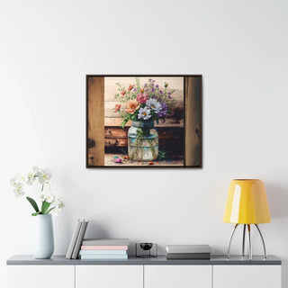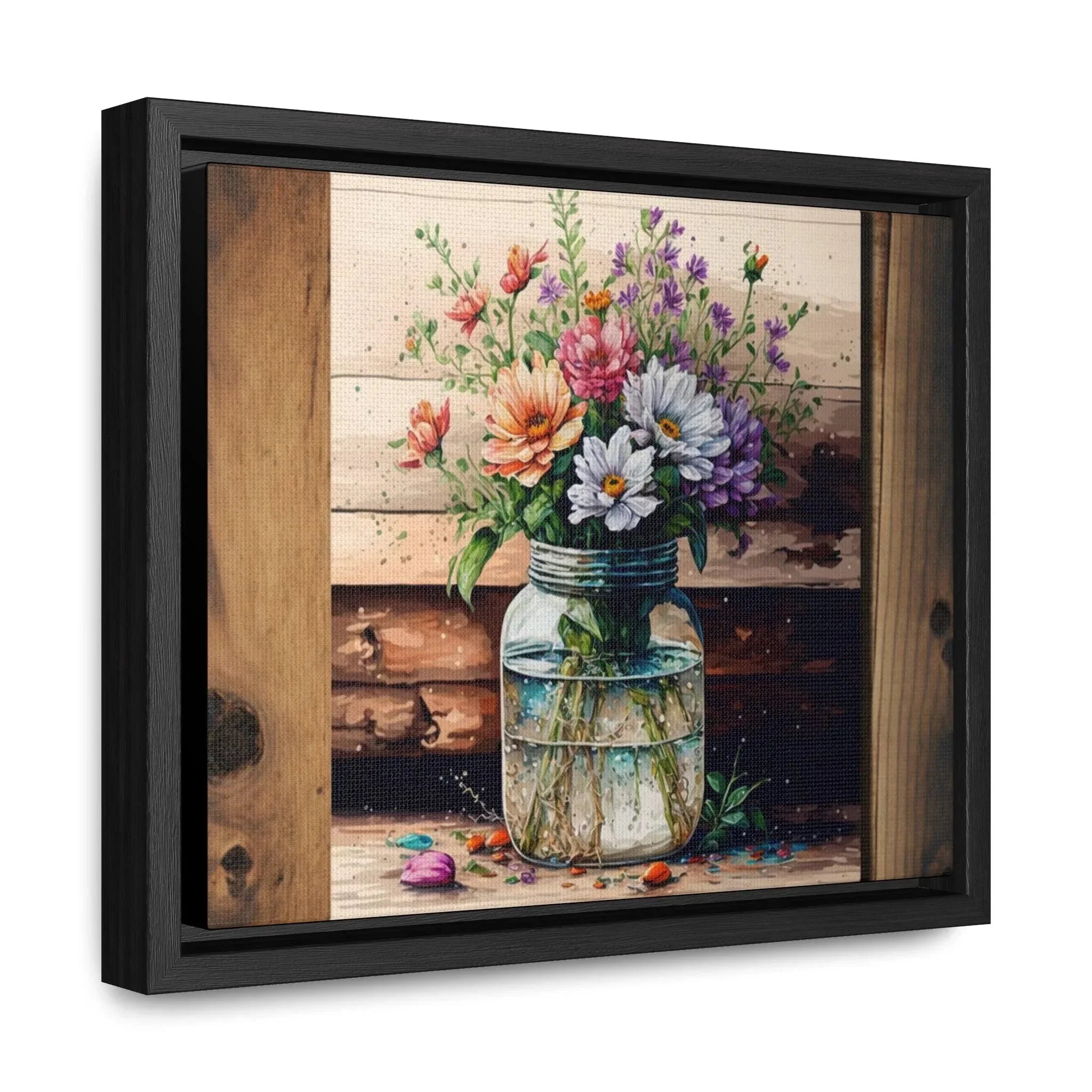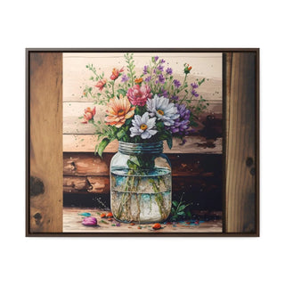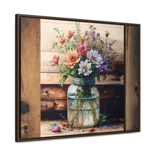 Rustic Beauty: Mason Jar Floral Watercolor Print on Canvas