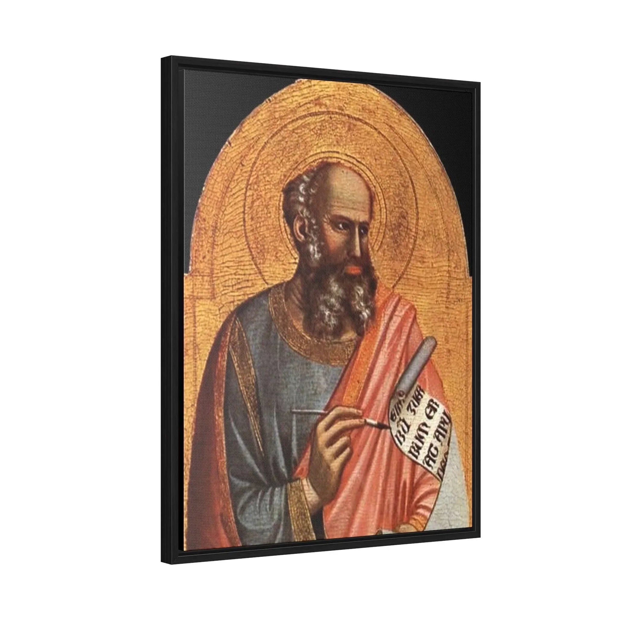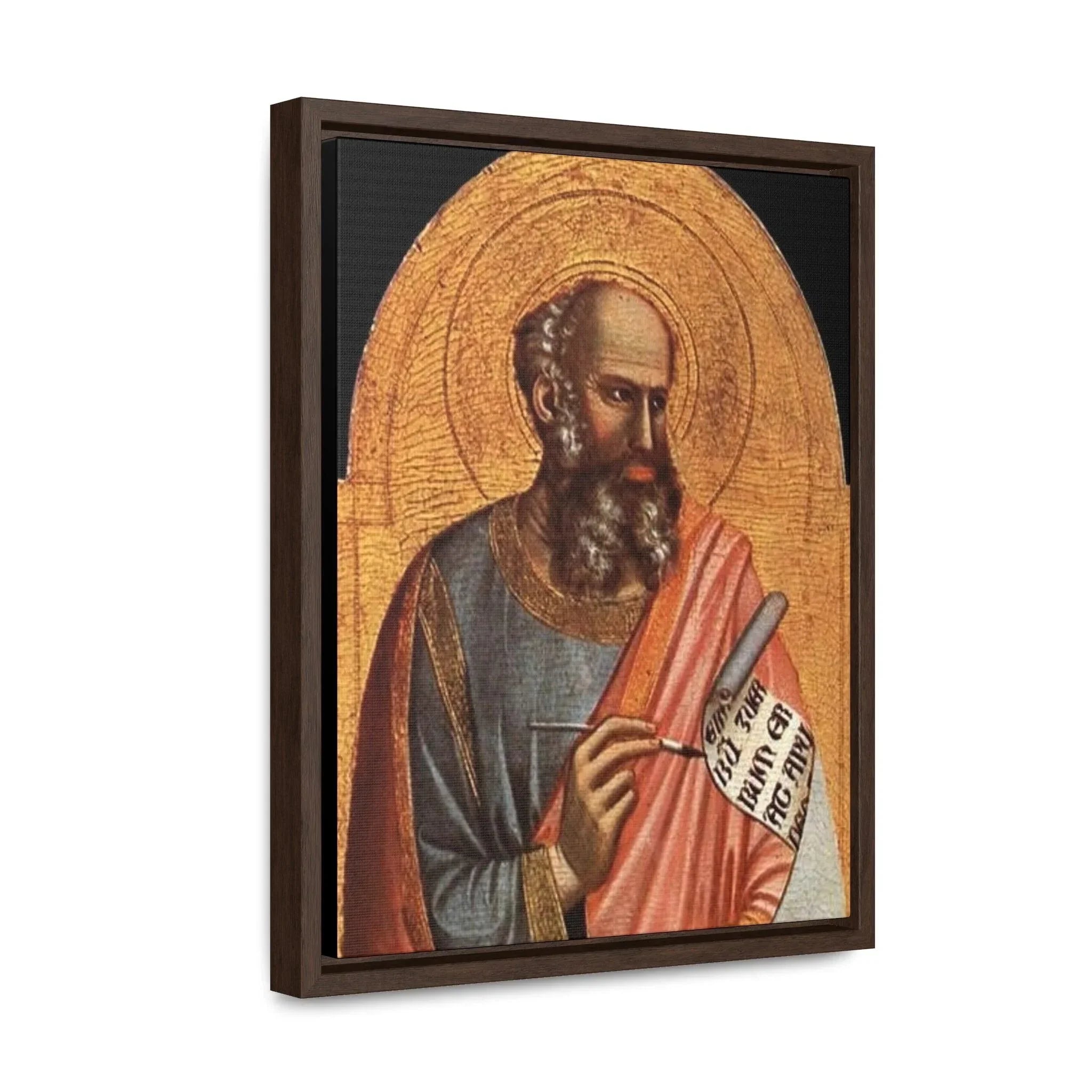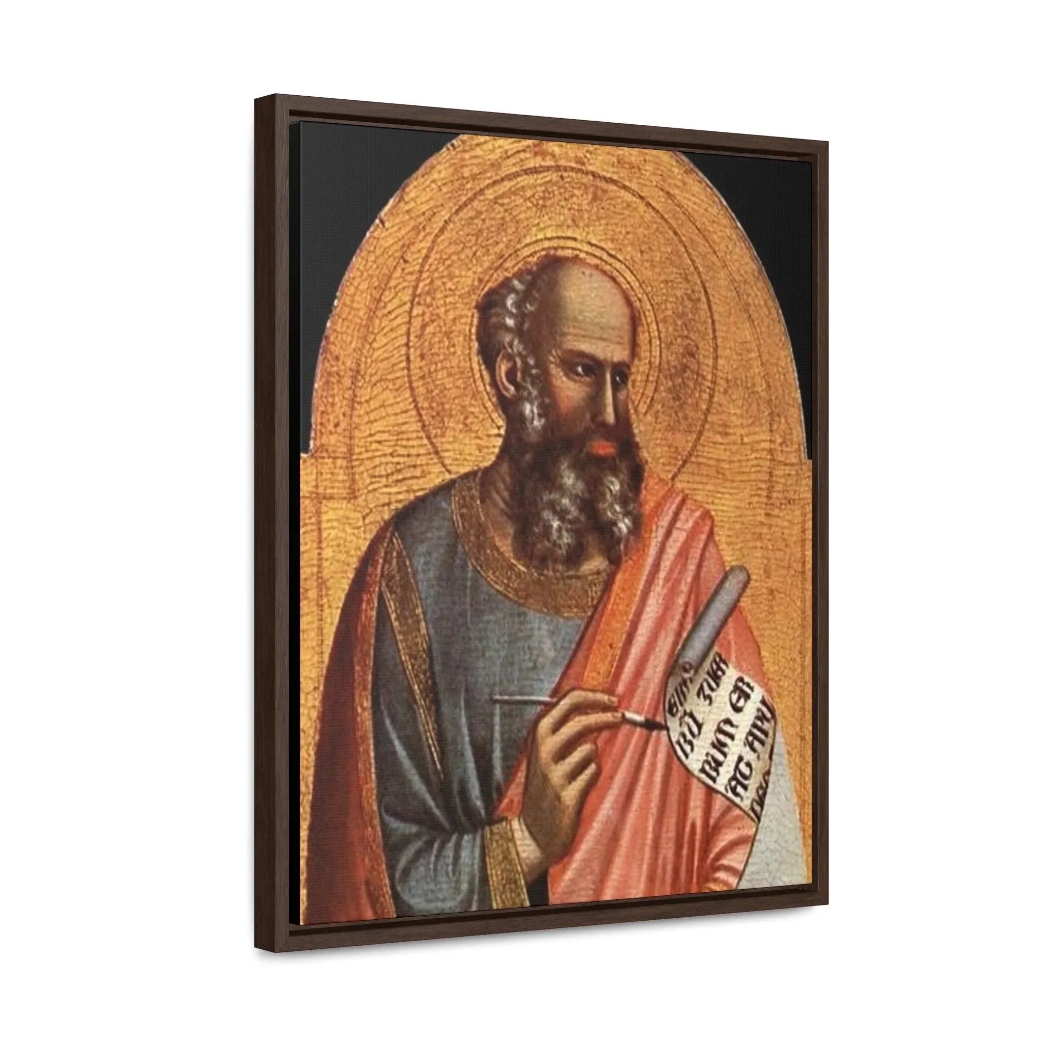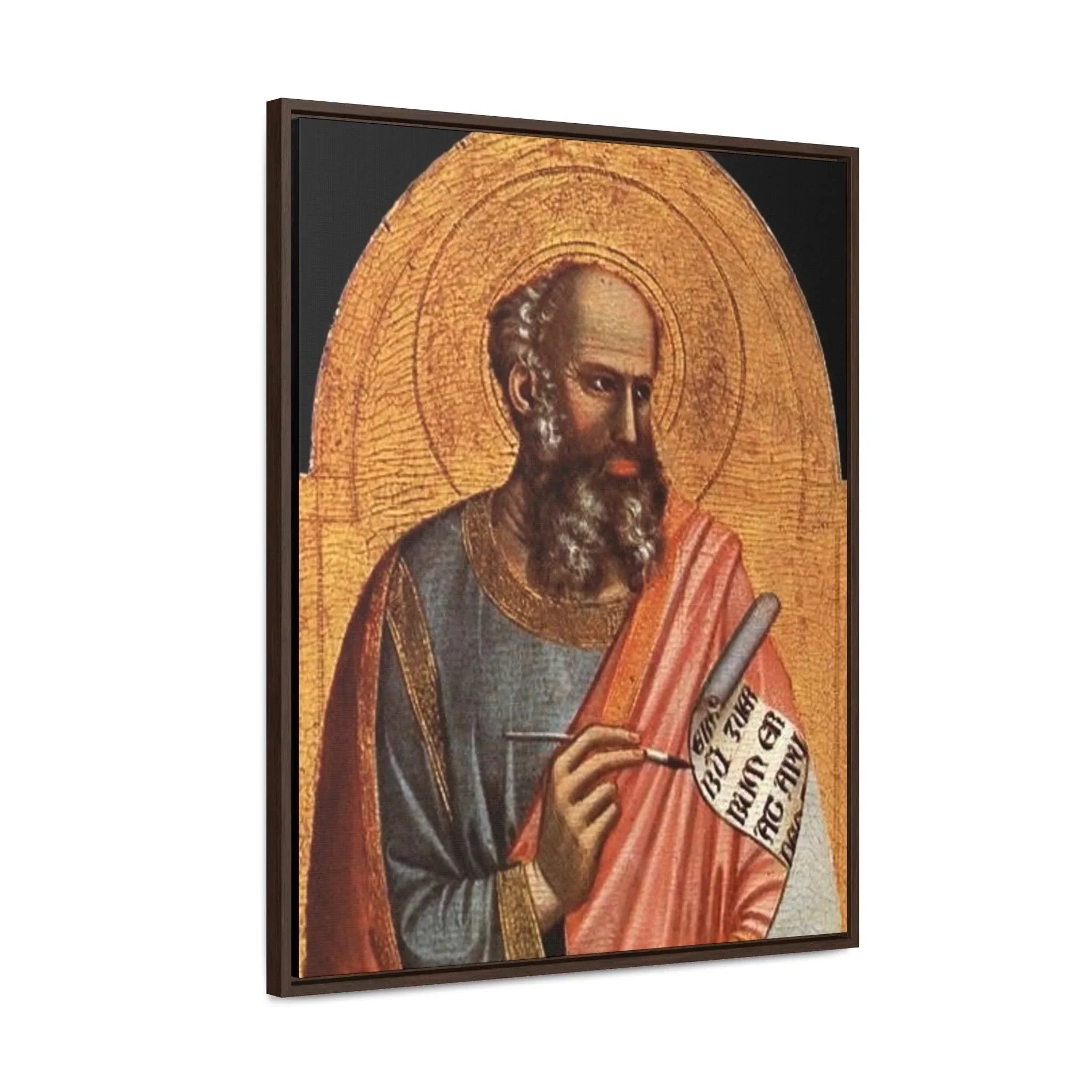 St-John-the-Evangelist - Giotto di Bondone- c.1320 - 1325 - Premium Framed Wrapped Canvas Print Dive into the depths of spirituality and artistic brilliance with the exquisite "Giotto St. John the Evangelist" artwork. Crafted with utmost reverence and meticulous attention to detail by the renowned Italian artist Giotto di Bondone, this high-quality framed canvas re-print invites you to embark on a journey of profound connection and contemplation. Transport yourself to the early 14th century, where the biblical figure of Saint John comes to life through Giotto's masterful brushstrokes. With profound reverence and spiritual depth, Saint John the Evangelist is portrayed in a way that captures the very essence of his role as an apostle and Gospel writer. The figure exudes a sense of wisdom and serenity, captivating the viewer and inviting them into the sacred world of this revered saint. Giotto's exceptional skill in conveying human emotion brings Saint John to life, forging a profound connection that transcends time and tradition. "Giotto St. John the Evangelist" is a testament to the artist's significant impact on the evolution of Western art during the Late Middle Ages. Through this remarkable portrayal, Giotto showcases his mastery of color and light, skillfully creating depth and emotion that draw the viewer into the spiritual realm of the subject. As one of the most celebrated painters of his time, Giotto's work continues to inspire awe and admiration, leaving an indelible impression on all who have the privilege of encountering it. Specifications: * Material: Crafted with 100% cotton fabric canvas, ensuring a high-quality reproduction that stays true to the original artwork * Frame: Encased in a poplar wood frame with a choice of walnut or black finish, offering a touch of elegance and versatility to suit your personal style * Image quality and detail: Experience the utmost clarity and precision, with high-quality image reproduction that captures every nuanced brushstroke and detail, allowing you to appreciate the artistry in its full glory Please note: This stunning piece is intended for indoor use only, where it can serve as a cherished centerpiece, a source of inspiration, or a symbol of devotion. Allow the timeless beauty and artistic brilliance of "Giotto St. John the Evangelist" to grace your sacred space. Immerse yourself in the transformative power of art and spirituality, and adorn your home with a piece that continues to inspire contemplation and devotion across the centuries.
