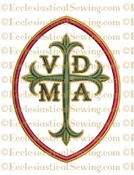 The Oval Frame Latin VDMA Cross is a part of the 500th Anniversary Collection of Ecclesiastical Machine Embroidery Designs was created by Edward Riojas and Carrie Roberts to mark the Celebration of Lutheran Heritage. The VDMA in an oval frame is available in 2 sizes.