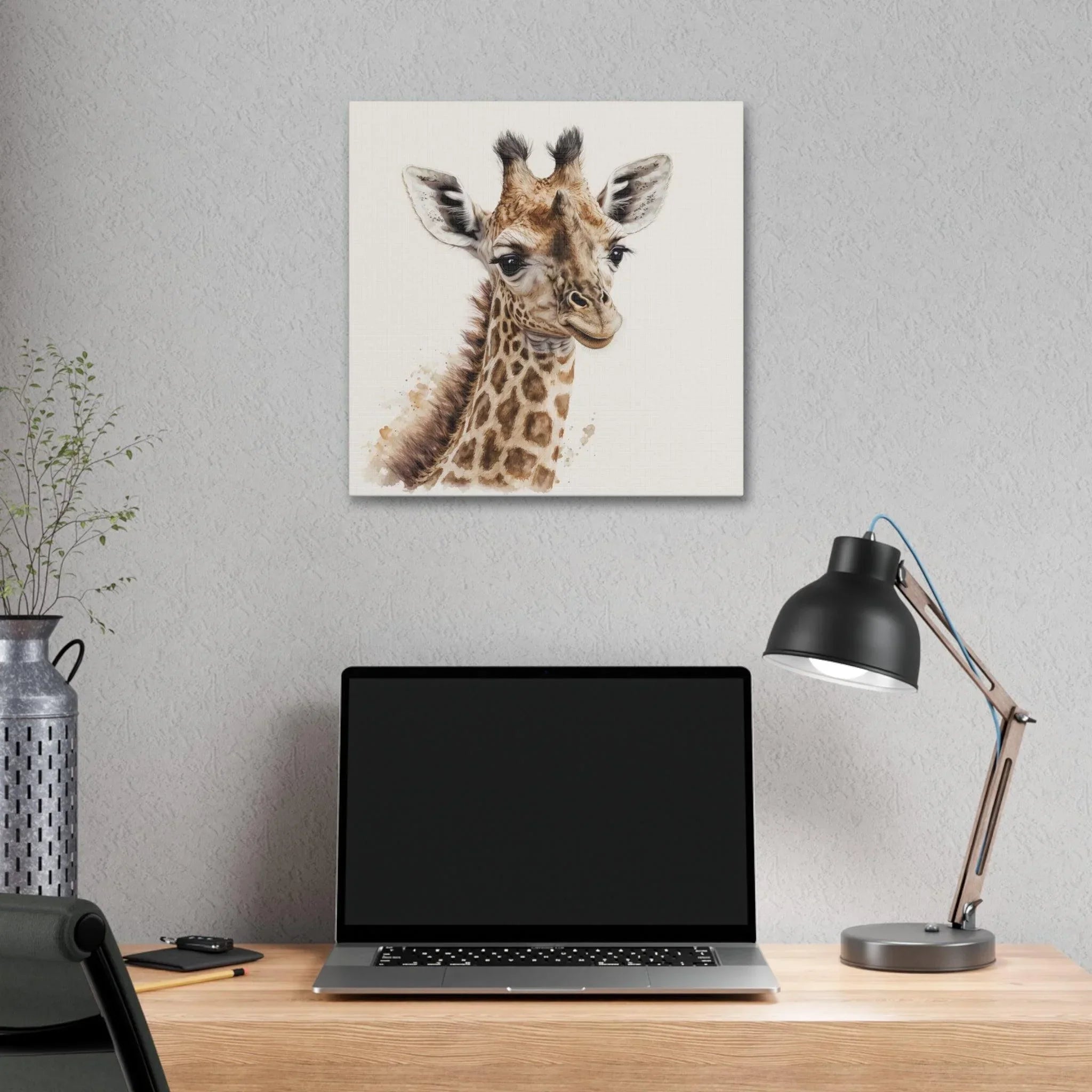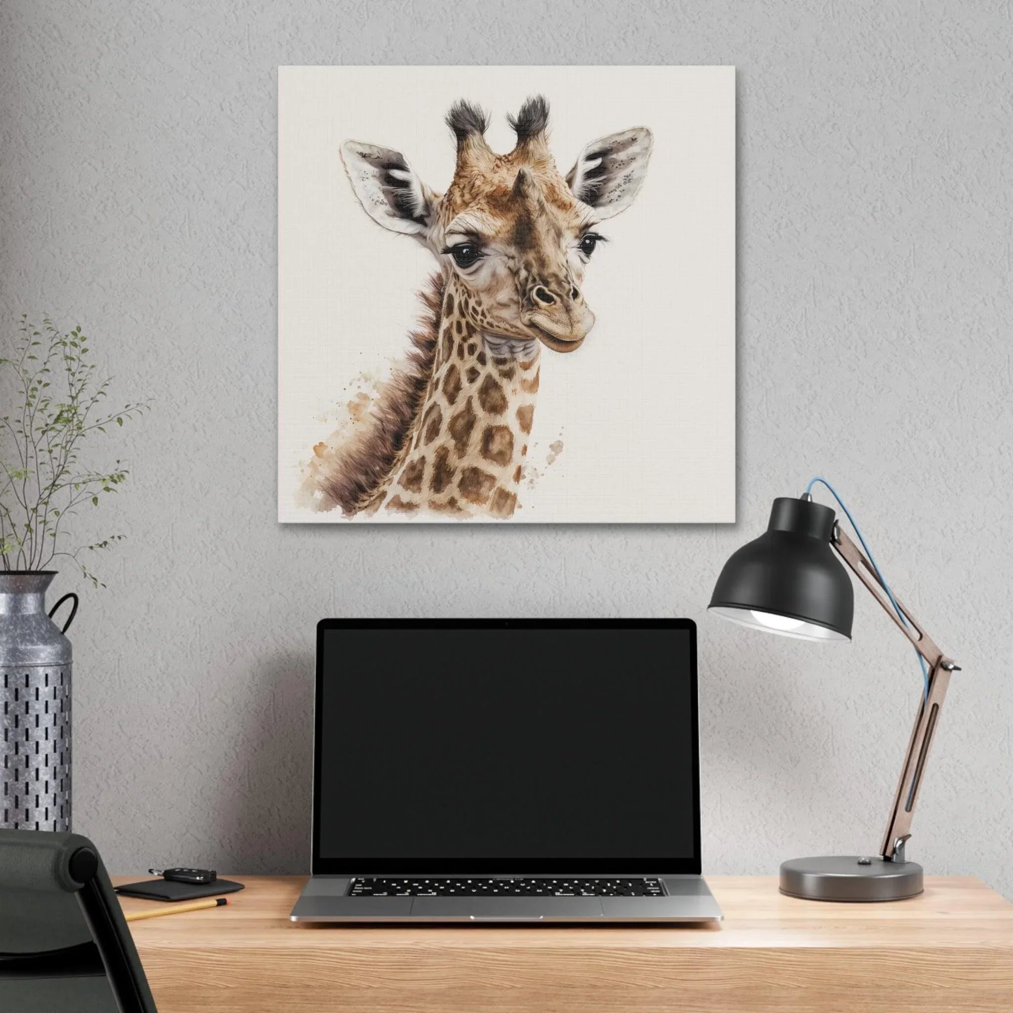 Watercolor Baby Giraffe Print - Adorable Nursery Wall Art for Baby Showers. Welcome your new arrival with this beautiful watercolor baby giraffe print. The perfect gift for a baby shower, this adorable wall art features a sweet and gentle giraffe in a dreamy watercolor style. The soft pastel colors and playful design make it a perfect addition to any nursery decor. Hang it on the wall or prop it up on a shelf to bring a touch of whimsy and charm to your little one's room. With its charming and unique design, this watercolor baby giraffe print is sure to be a treasured addition to your child's nursery. Buy the beautiful print for yourself or give it as a gift.