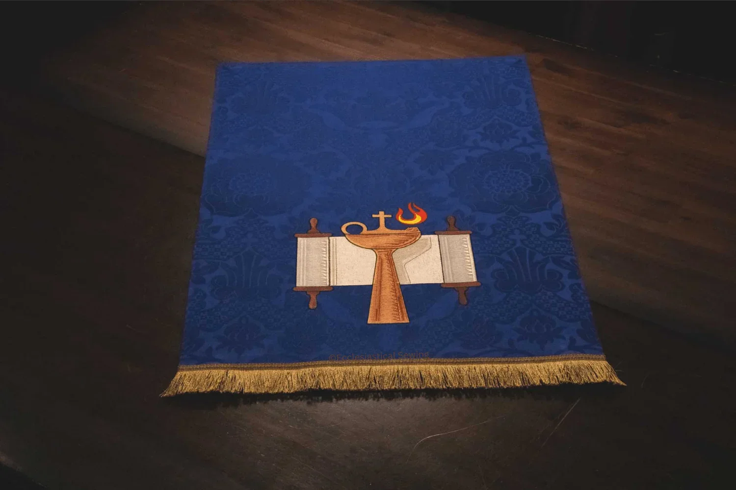 Please visit our YouTube channel to see this Advent set featuring the City of David Superfrontal Luther Rose Brocade for altar decoration
