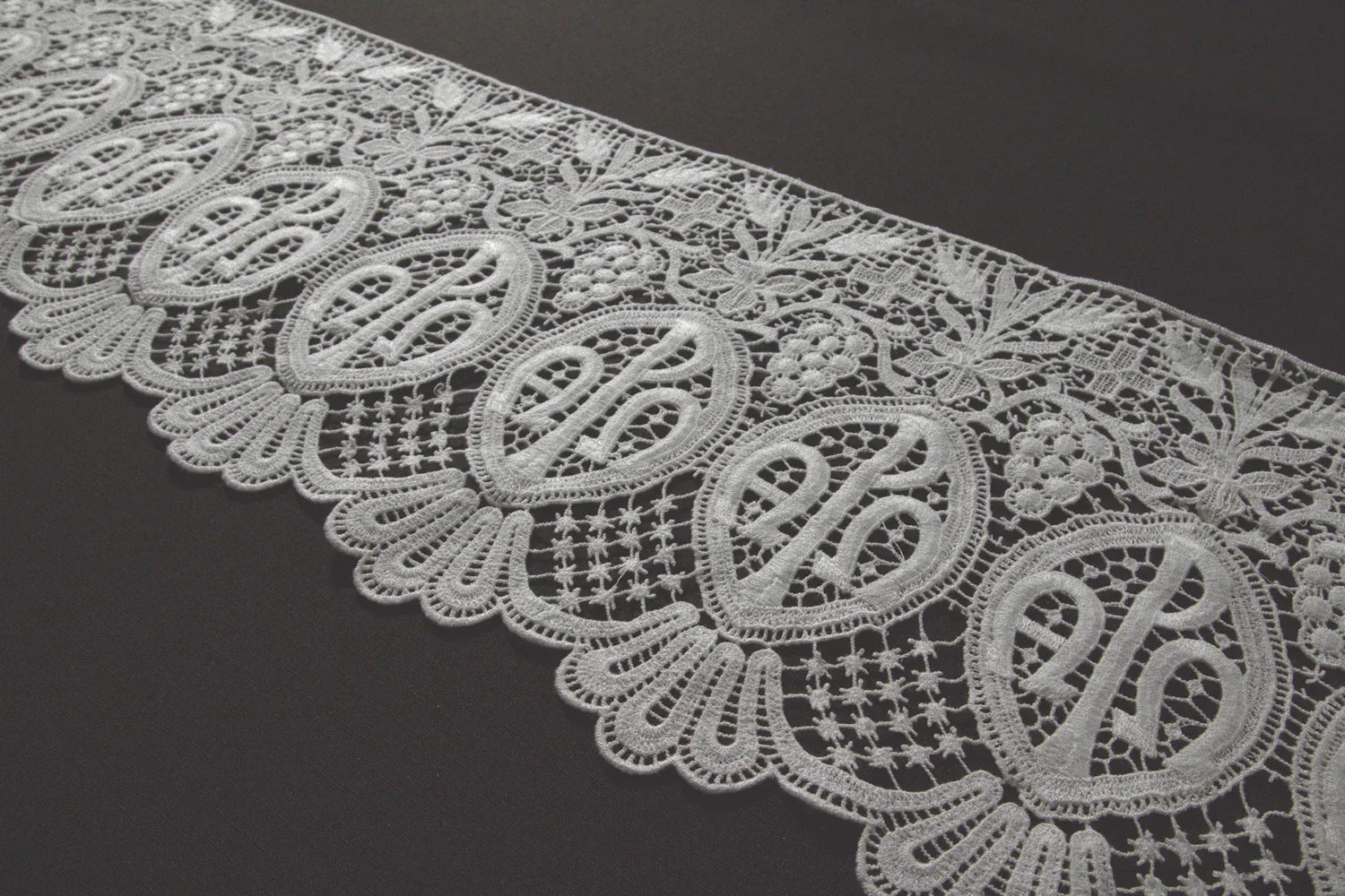This 8½" wide lace trim makes a bold and reverent statement on vestments and altar linens.