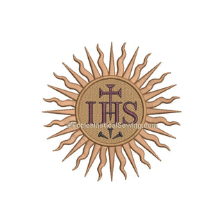 This is a design seen frequently on historical church vestments. It is often worked in heavy goldwork threads. For those who would like to recreate the look of historic vestments, it is available here as a digital embroidery design.