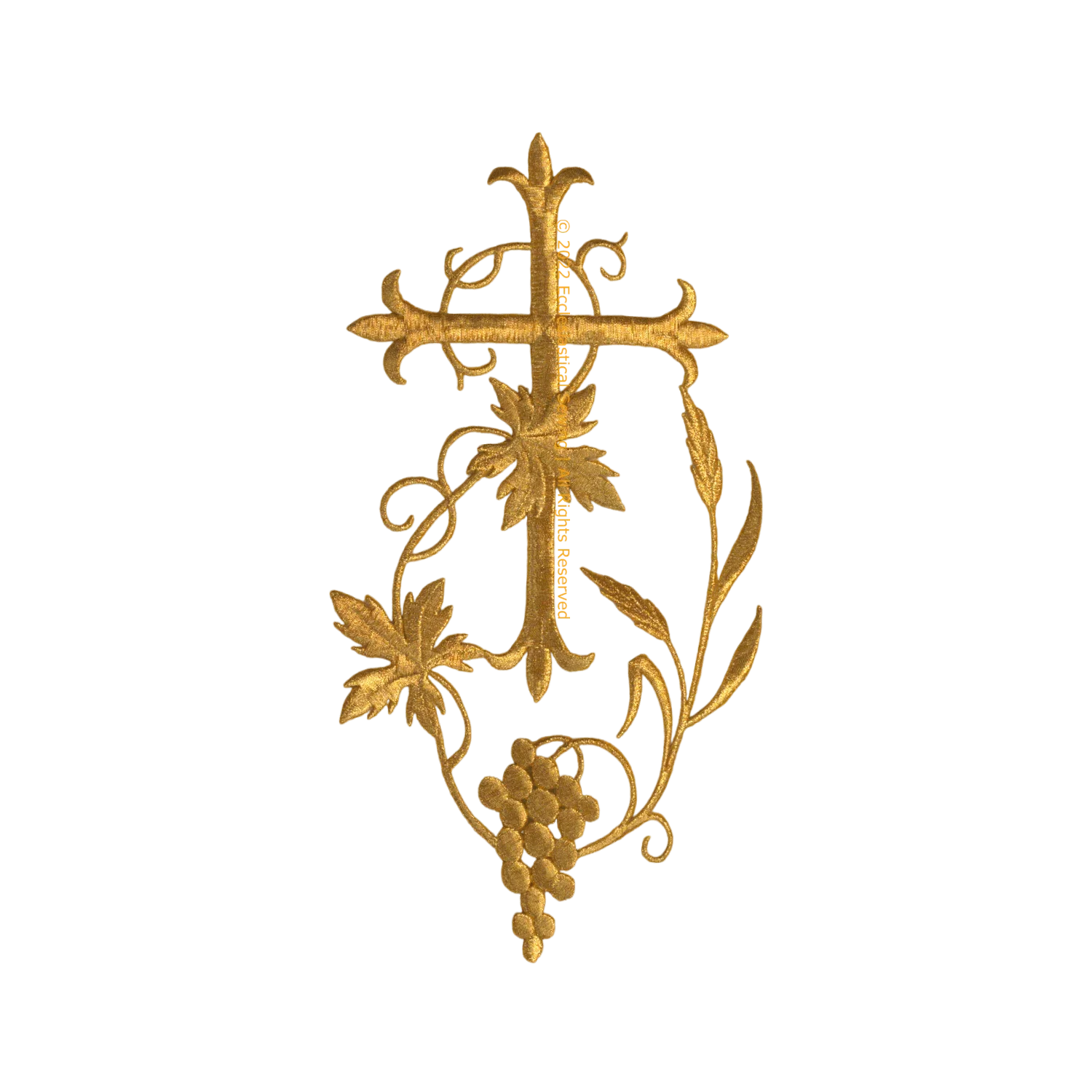 Grape and Wheat Cross Gold Iron On Applique