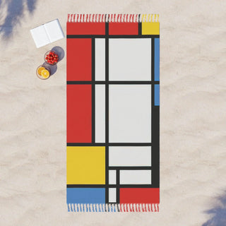 Minimalist Bauhaus: Custom Printed Beach Cloth for a Modern Beach Experience Experience a modern take on the beach with this custom printed Bauhaus-inspired beach cloth. The on-demand printing process ensures that each cloth is made just for you, making it truly one-of-a-kind. The clean geometric design is inspired by the Bauhaus movement, known for its simplicity and functionality, making it a perfect addition to any modern or minimalist beach style. The soft and absorbent material will keep you comfortable and dry while you relax in style. Whether it's chilling in the Great Outdoors or having fun at the beach, these boho beach (or boulder) cloths are the perfect take-along to keep you warm. Made with 100% soft polyester, these cover-ups come in a big size of 38" x 81" and are the perfect canvas for playful beach day buddy. .: 100% polyester .: One size: 38" × 81" (97cm × 206cm ) .: Thickness: 0.06''(1.5mm) .: One-sided print .: Knotted tassels on edges. Made to Order. Allow 3-8 extra days for shipping.